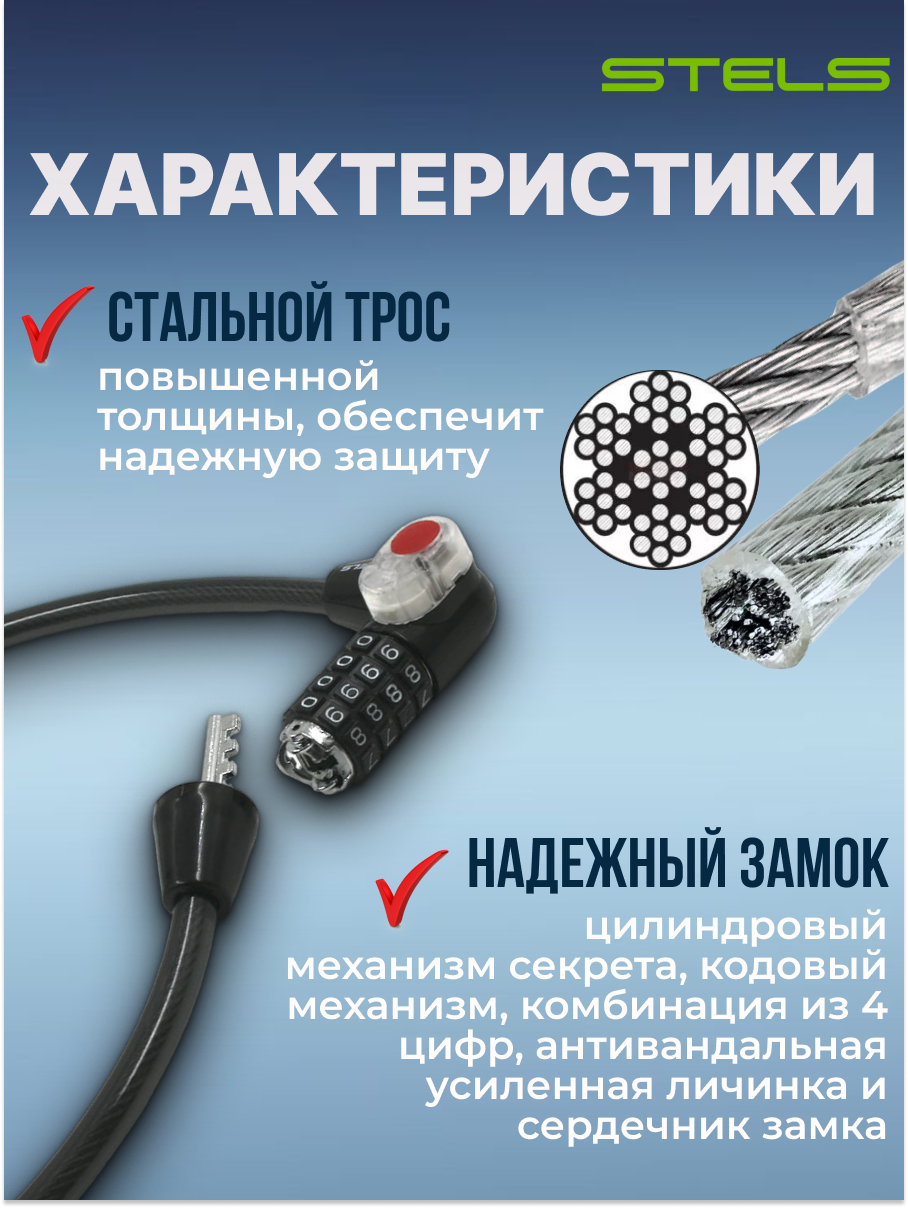 СохранитьТрос-замок STELS 10х800мм 84608 с кодовым замком с подсветкой со стальным тросом, чёрный NEW интересное: