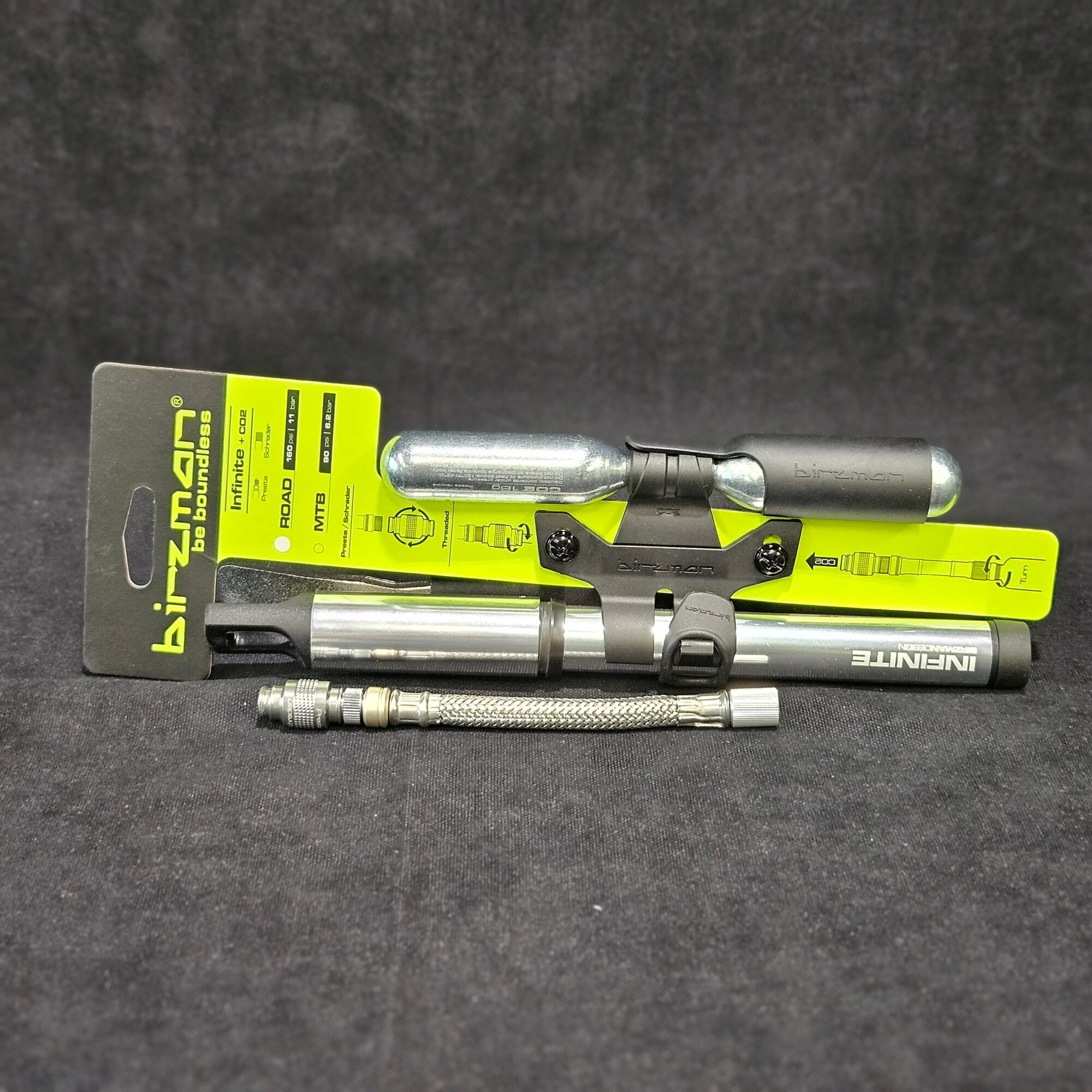 Купить Насос ручной со шлангом Birzman Infinite Road CO2, 2 баллона 16гр в комплекте, для шоссе, до 160 psi / 11 bar, серебристый