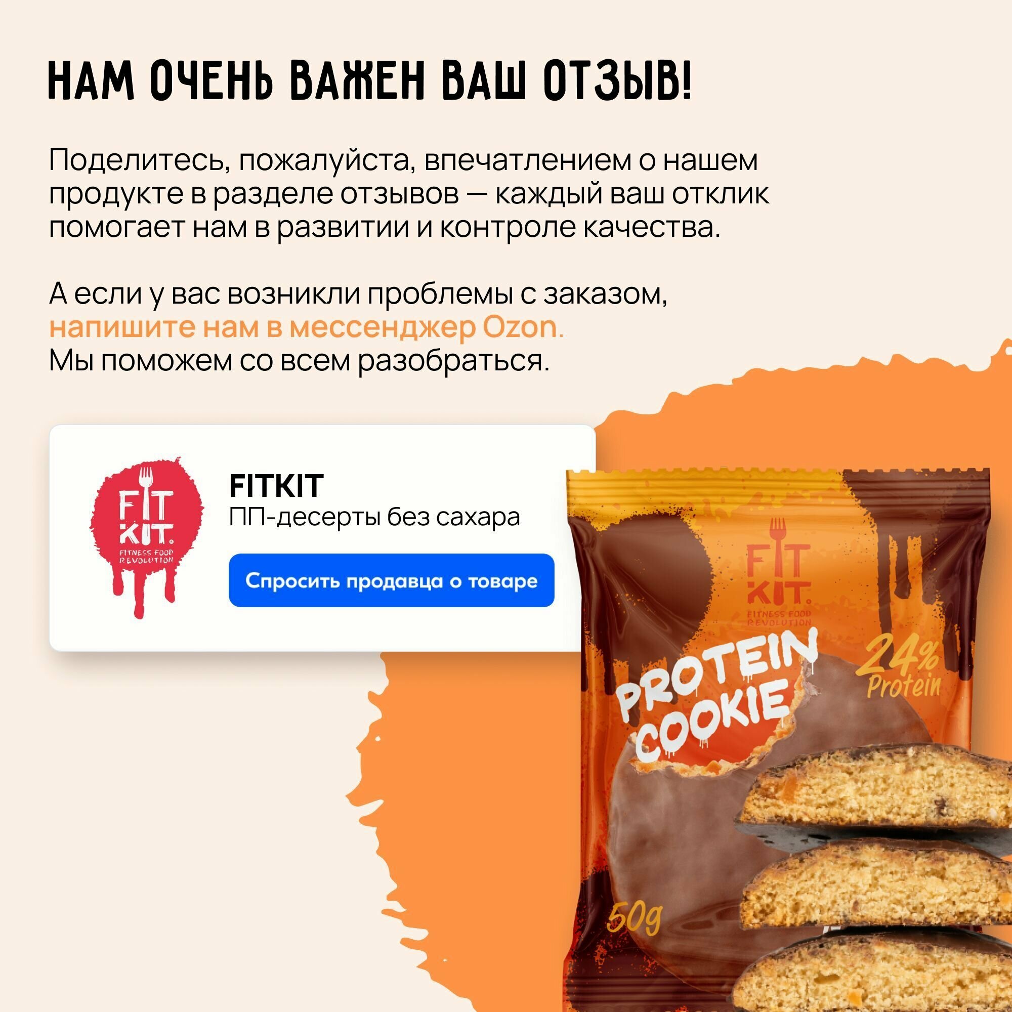 Протеиновое печенье в шоколаде без сахара Fit Kit Chocolate Protein Cookie, 10шт x 50г (апельсиновый нектар)
