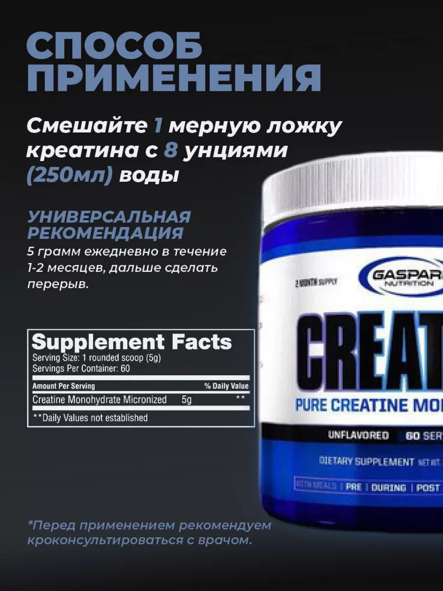 Gaspari Креатин Моногидрат Creatine, 300 гр интересное: