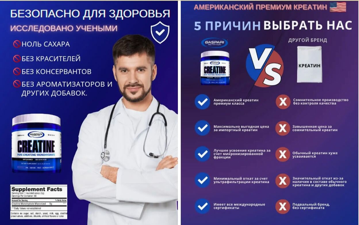 | Плюсы: | на текущий момент самый доступный из импортных креатинов |