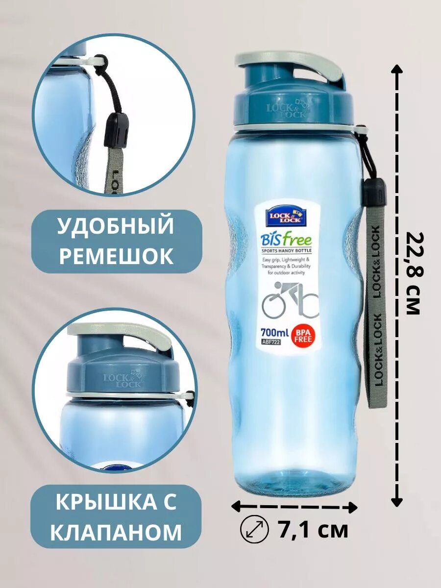 Бутылка дорожная Lock&Lock Sports 700мл голубая (ABF722B)