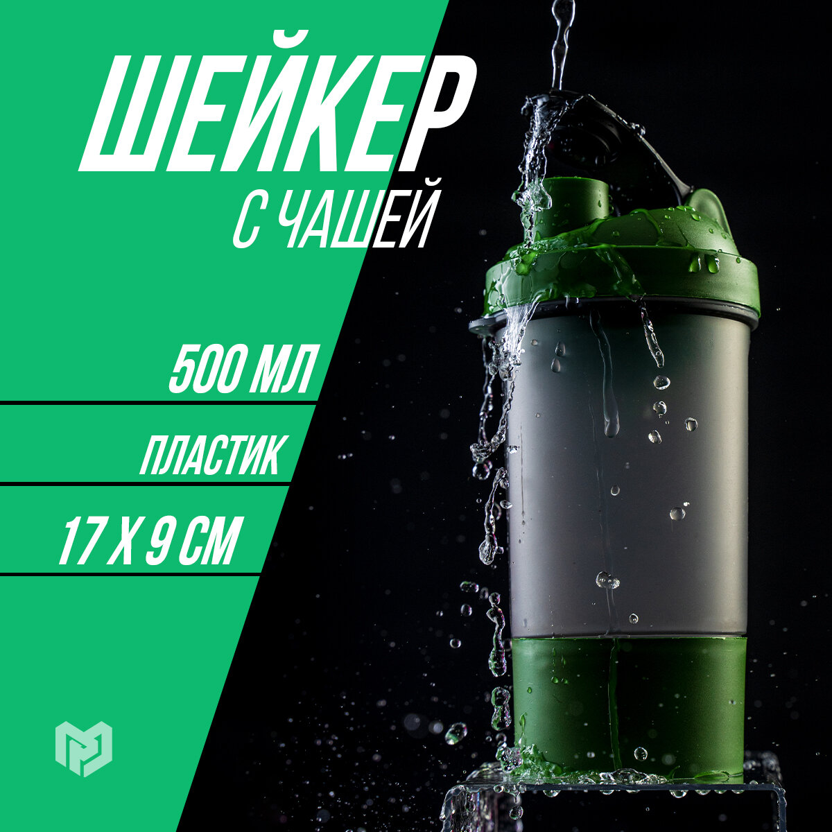 Шейкер спортивный Sima-land с чашей под протеин, серо-зеленый, 500 мл (4842554)