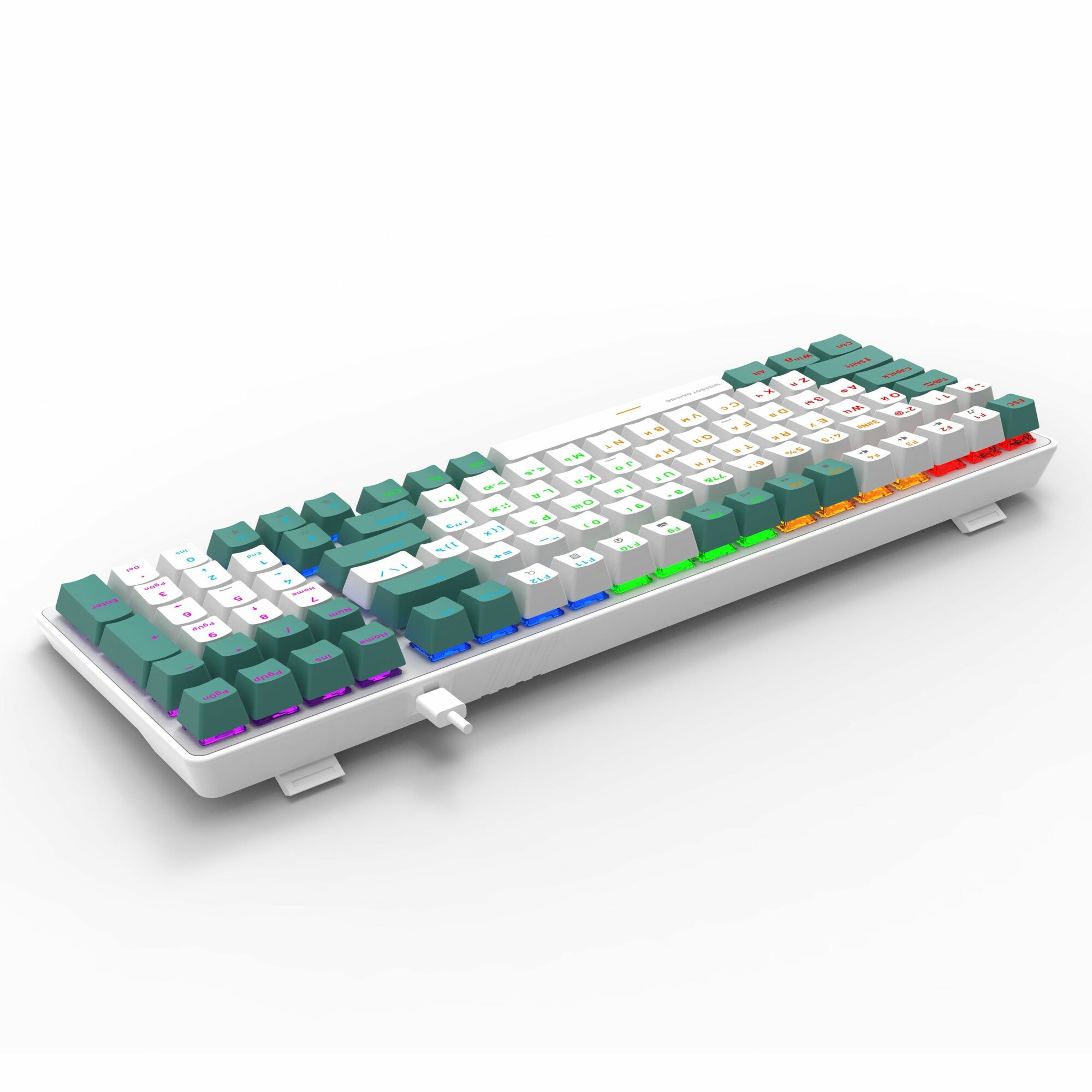 Клавиатура механическая игровая с подсветкой FREE WOLF K3, бело-зеленые клавиши, синие свитчи, белый корпус
