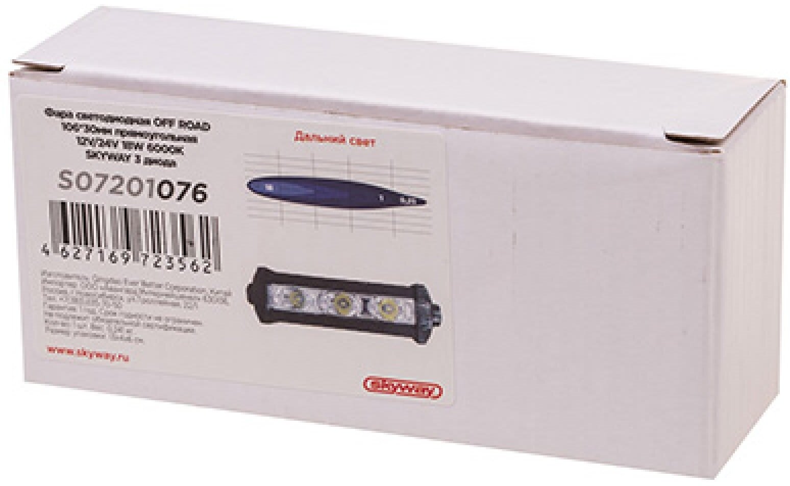 Купить Фара светодиодная OFF ROAD 105*30*50мм прямоугольная 12V/24V 18W 6000К SKYWAY 3 диода Дальний свет (S07201076)