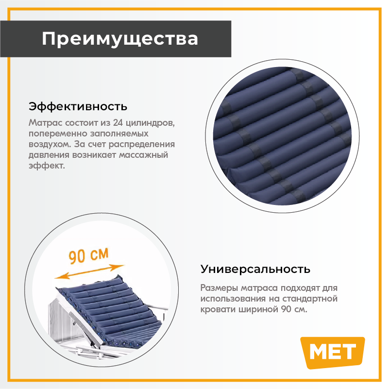 Противопролежневый трубчатый матрас МЕТ BASIC с компрессором, из непромокаемой ткани, для пожилых людей, лежачих больных и инвалидов