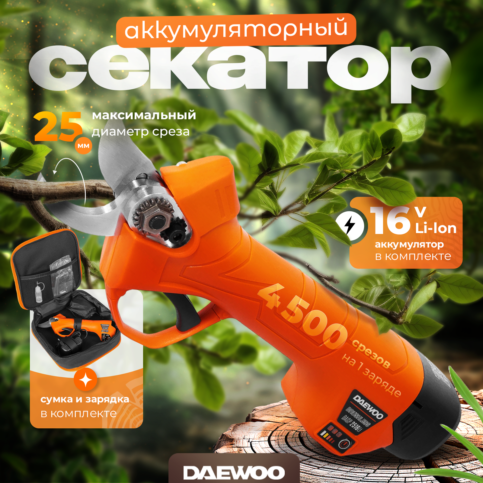 Секатор аккумуляторный DAEWOO DAGP 2516Li с АКБ и ЗУ (16В, 2.5Ач)