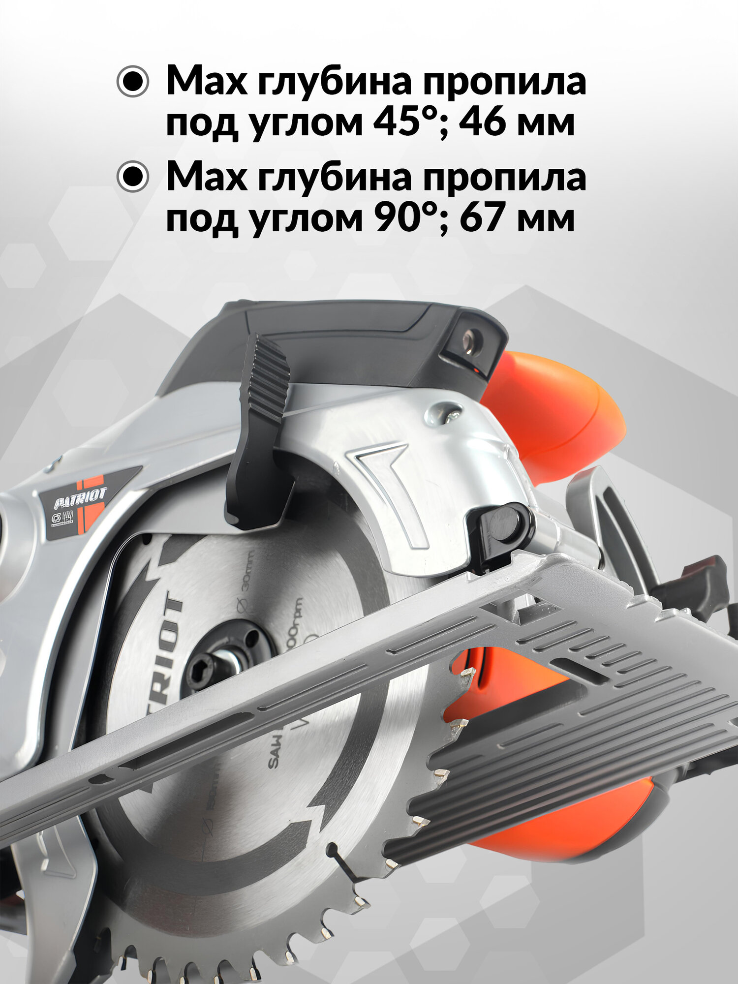 Пила циркулярная PATRIOT CS 190 /1500 Вт, литая платформа, пильный диск 190х30 мм 58310