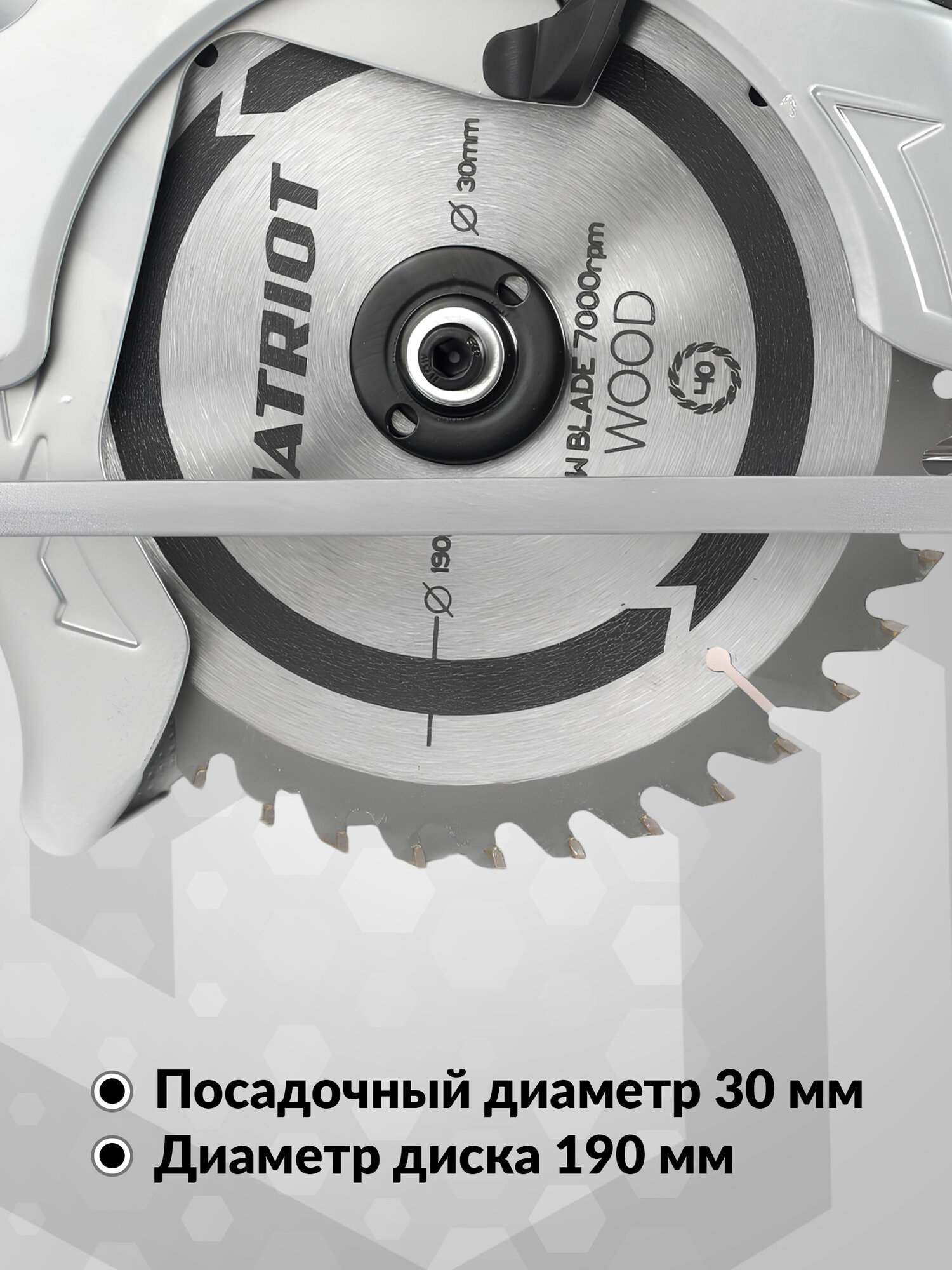 Пила циркулярная PATRIOT CS 190 (1500Вт/диск 190х30мм/литая платформа)
