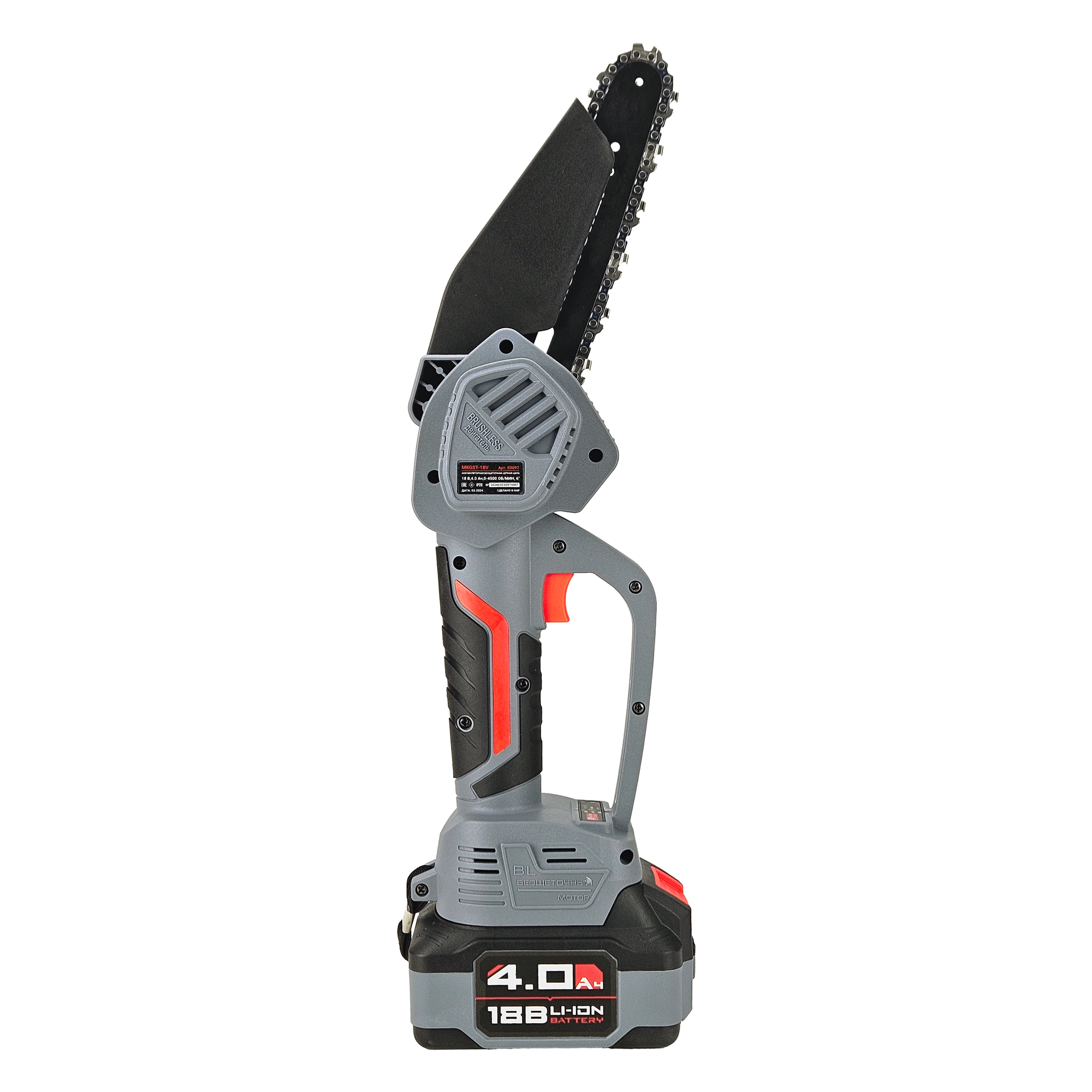 Цепная пила ProfiPower MKGST-18V (Li-ion-1шт, 4.0Ач,15см, 6",0-4500 об/мин,шина, цепь, З/У)