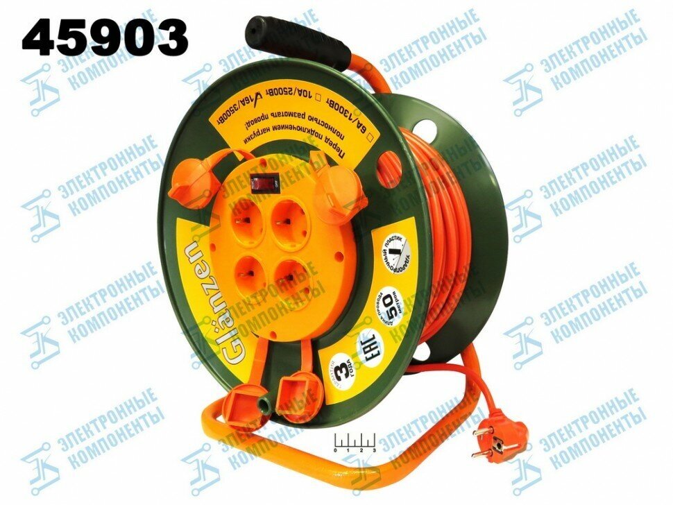Силовой удлинитель на катушке GLANZEN EB-50-007