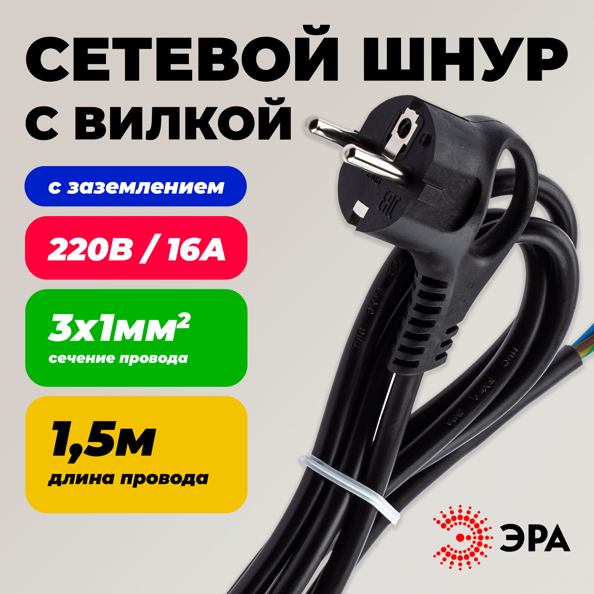 Купить Шнур сетевой ЭРА U-3x1-1,5m-B с заземлением 1,5м ПВС 3x1мм2, с вилкой, 1,5 м