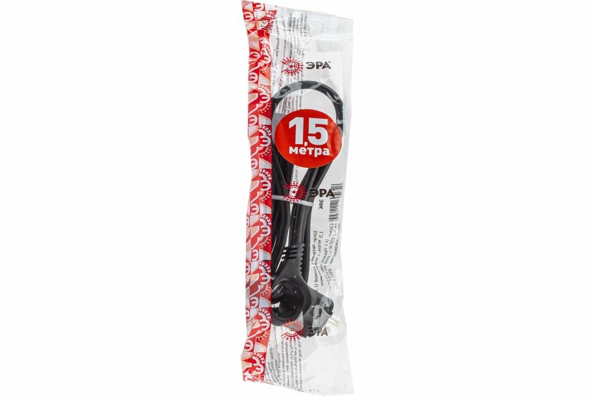 Шнур сетевой с вилкой U-3x1,5-1,5m-B с заземлением 1,5м ПВС 3x1,5мм2 черный, ЭРА Б0048705 (1 шт.)