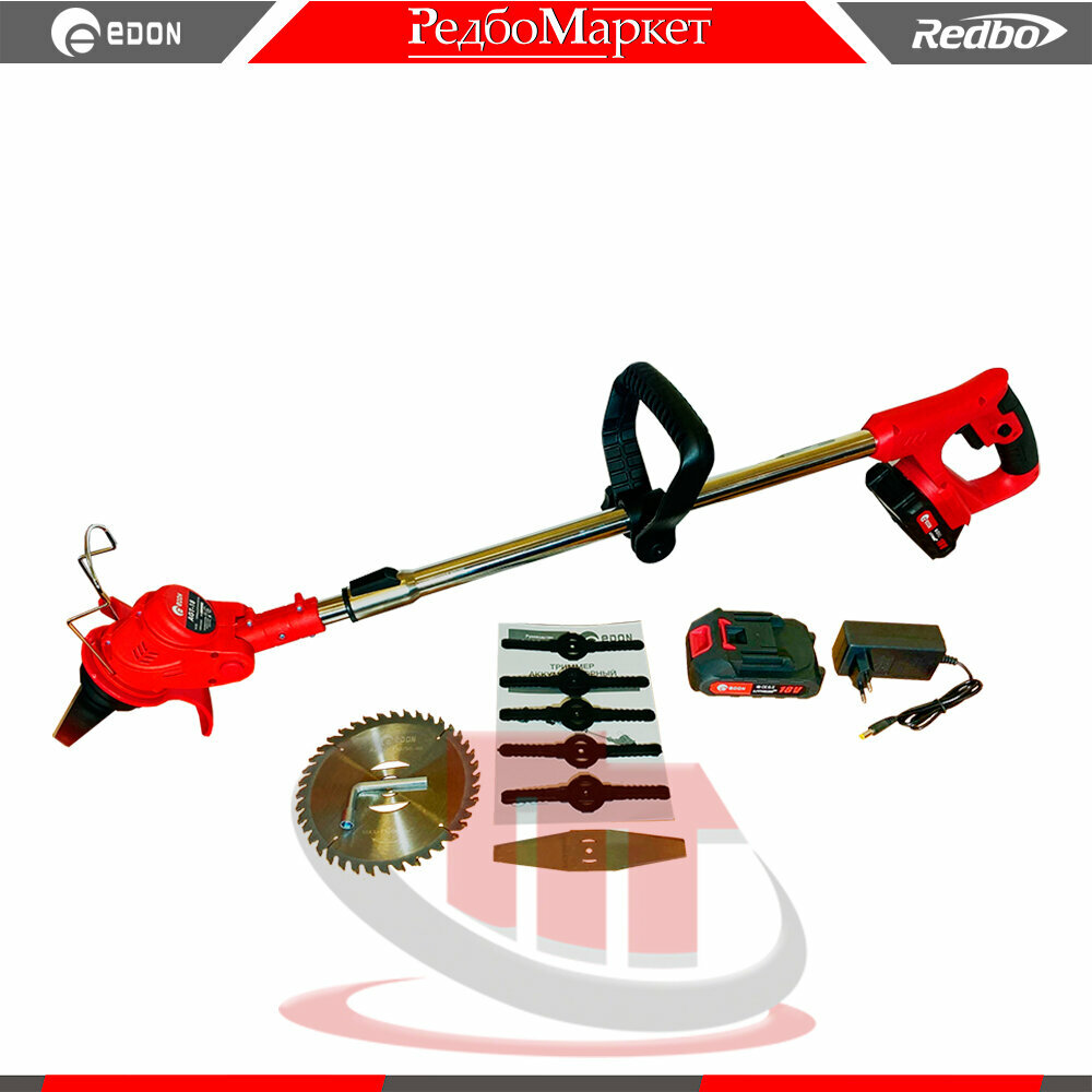 Триммер аккумуляторный садовый Edon AGT-18 (18 В, 10000 об / мин, 2 АКБ по 1,5 Ач)