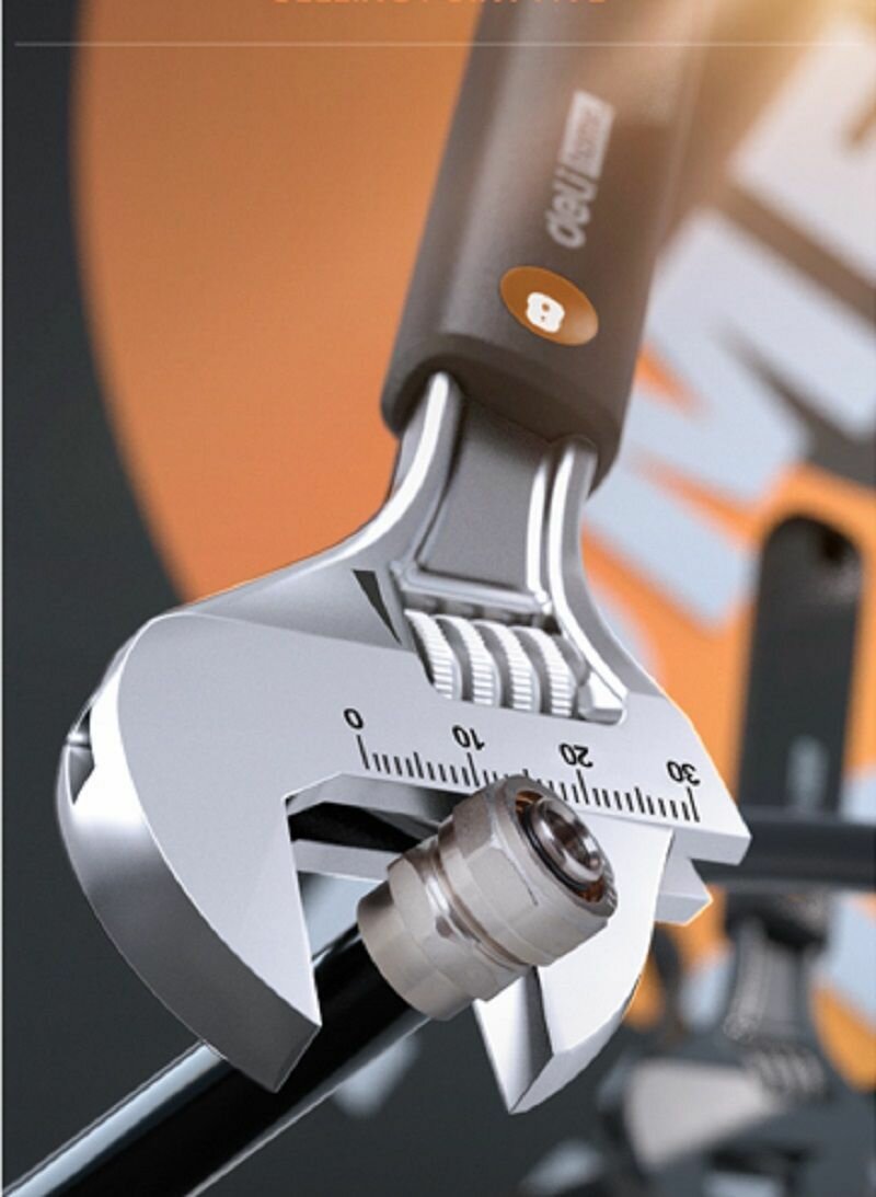 Разводной ключ DELI Home Series Gray HT1508c 200 мм, Soft Touch рукоять, лазерная гравировка шкалы, эксклюзивный дизайн, подарочная упаковка 112881