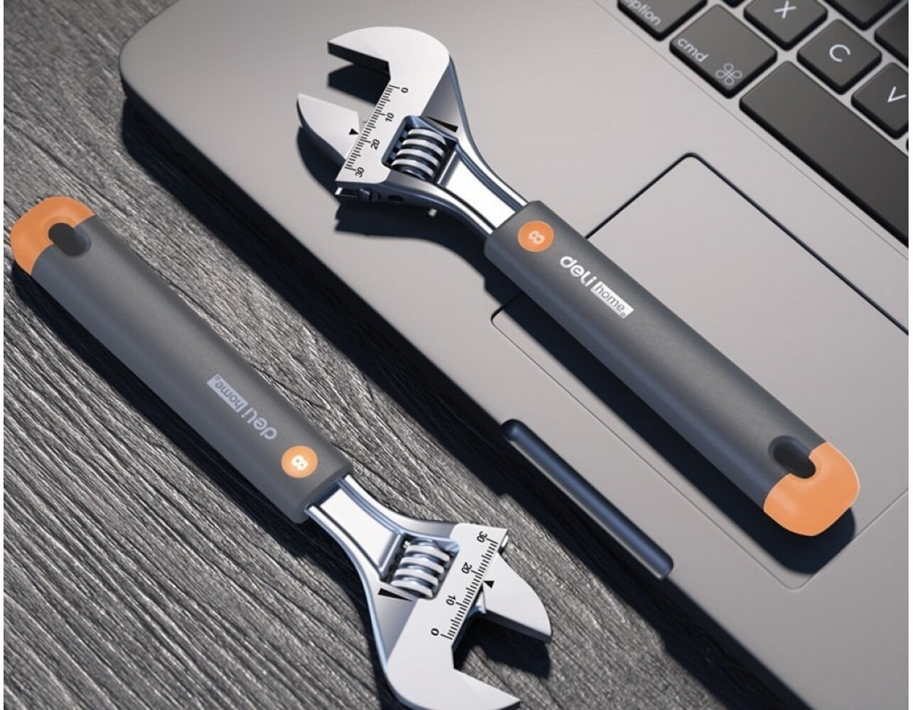 Ключи Deli Разводной ключ «Home Series Gray" Deli HT1508C 200мм, эксклюзивный дизайн, рукоятка - высококачественный софттач пластик