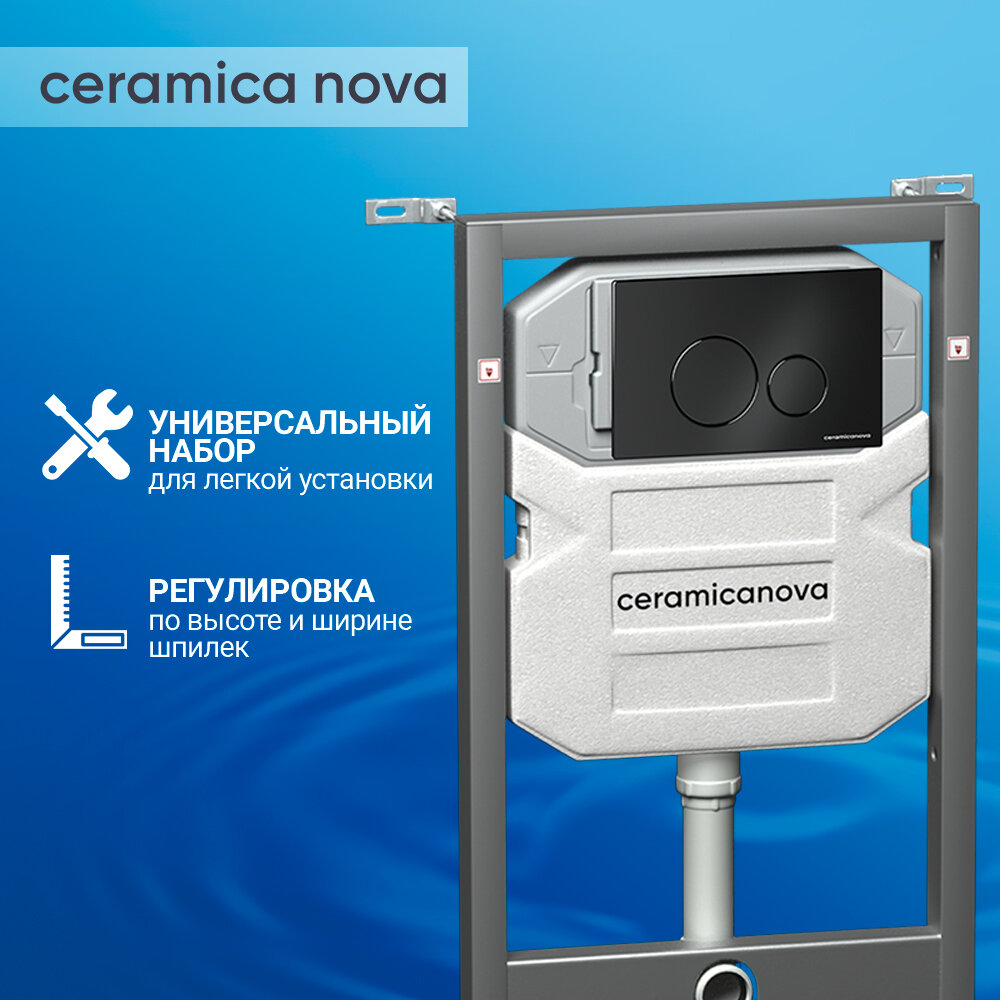 Инсталляция рамная для подвесного унитаза Ceramica Nova с кнопкой Round, 114 x 50 см, черная