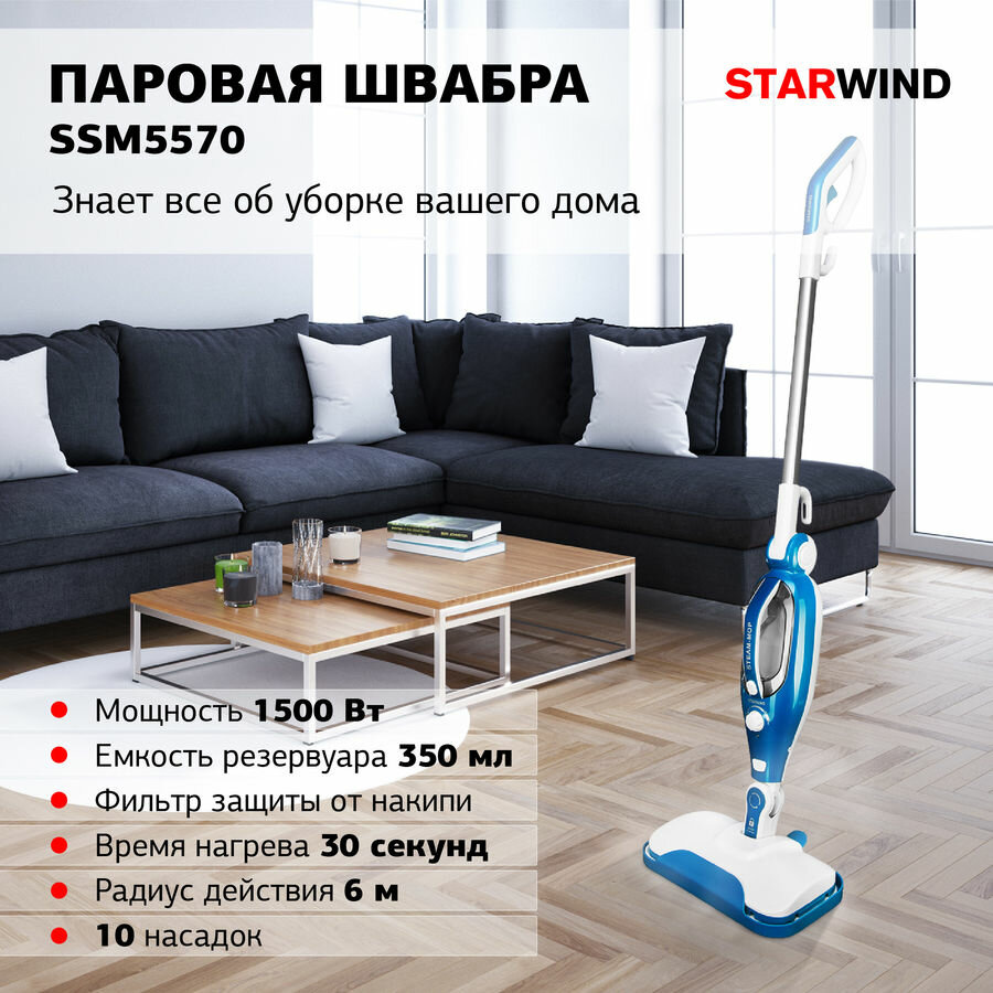 Швабра паровая Starwind SSM5570 1500Вт голубой/белый SSM5570 .