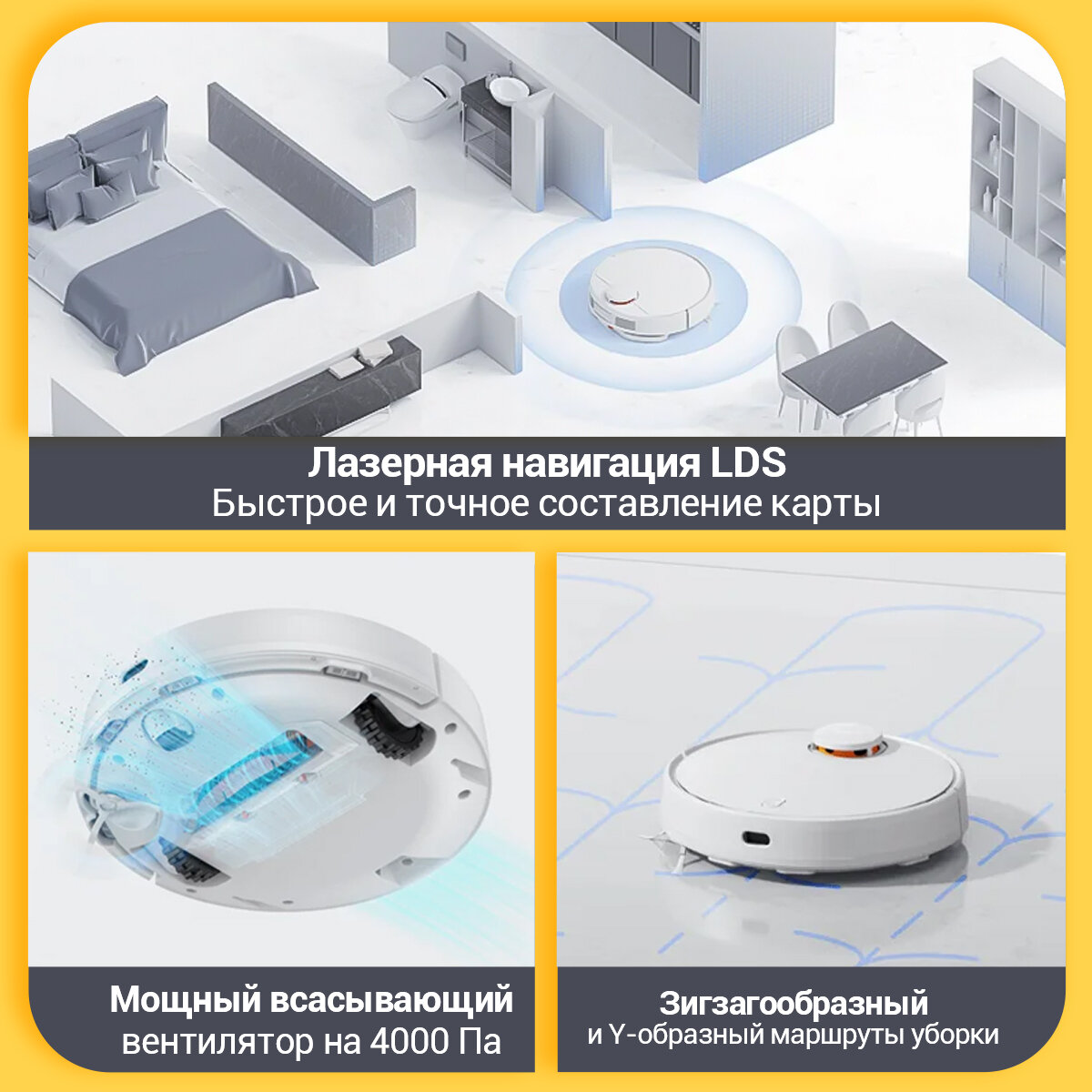 Одновременно влажная и сухая уборка Умный лидар Возможность изменить озвучку в два клика |