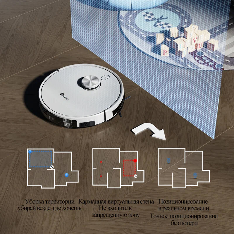 Карту создал моментально, самостоятельно при первом включении и объезде территории. Кстати, приложение загрузили, отсканировав код на дне самого пылесоса и на коробке тоже есть, что очень удобно! Упаковка достойная: 1 большая квадратная коробка, а в ней ещё 3, короче матрёшка) каждая деталь упакована отдельно ( не поскупились ) Богатая комплектация: пара запасных щёток, 5 доп мешков для сбора мусора ( кстати, каждый рассчитан на месяц уборки ), доп тряпка для влажной уборки, фильтр, инструменты для очистки от волос. Инструкции 2, на станцию и пылесос по отдельности. После каждой сухой уборки, находит станцию, паркуется на ней и очищается, сила мощности всасывание высока, оттого это достаточно громко, но занимает не более нескольких секунд, затем с уже чистым контейнером, заходит и становится на зарядку. Каждая операция сопровождается озвучкой. Сразу скажу, что по умолчанию стоит английский язык, но зайдя в настройки легко меняется на русский.И вуаля: наш пылесос начинает говорить приятным, понятным нам, женским голосом,поэтому пришлось устройству имя давать женское!Заряд аккумулятора радует: у меня, убрав дом площадью в 100 КВ.м., уходит на зарядку с остатком в 70%, восхищает.Наличие сухой и влажной уборки!Всегда, легко находит станцию и успешно возвращается на базу, не теряется.Есть ручной режим, т.е пульт управление с телефона |