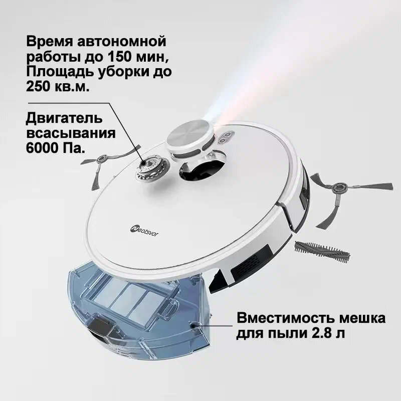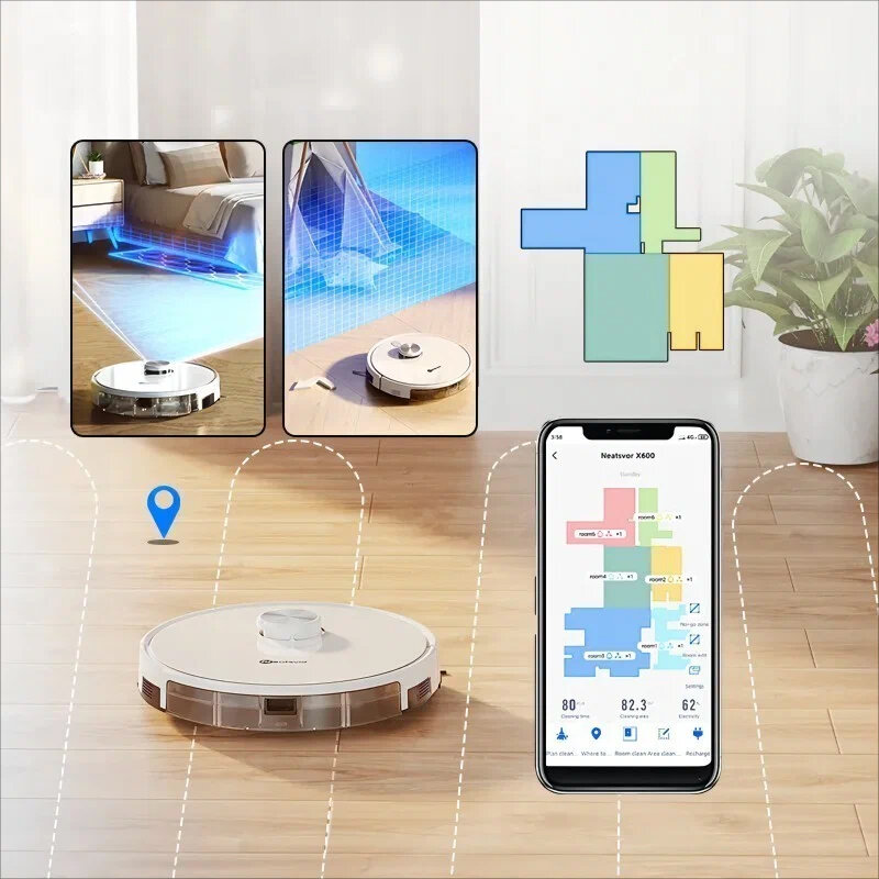 Робот-пылесос с Wi-Fi, NEATSVORS600RU, 6000па, 5200мАч, базой самоочистки и лидарной навигацией, белый
