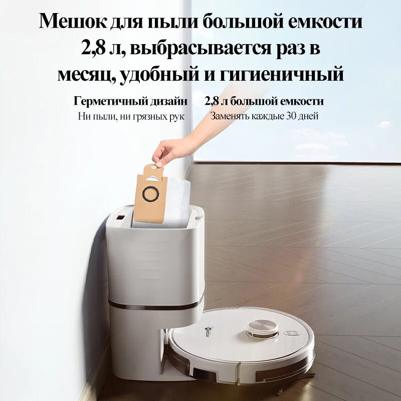 | Особенности конструкции | гироскоп / датчик перепада высоты / индикатор заполнения пылесборника / лидар / мусоросборник в базе / мягкий бампер |