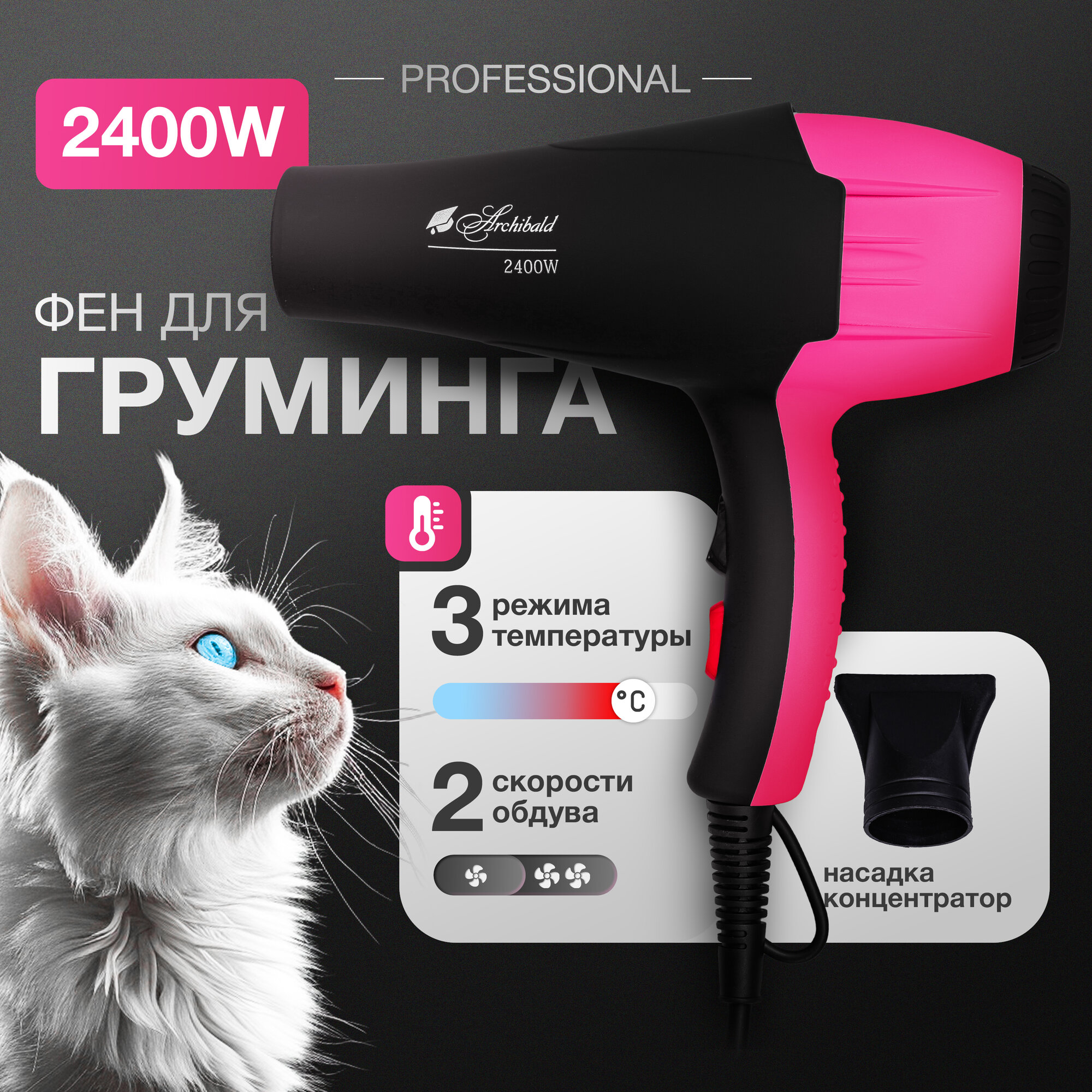 Фен для собак кошек груминга archibald 9101 с ионизатором профессиональный Мощность - 2400W интересное: