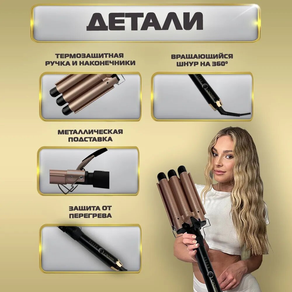 Плойка для завивки волос, стайлер для укладки, мультистайлер для локонов, профессиональная, трехволновая плойка 25 мм для кудрей/ CRONIER CR-2025