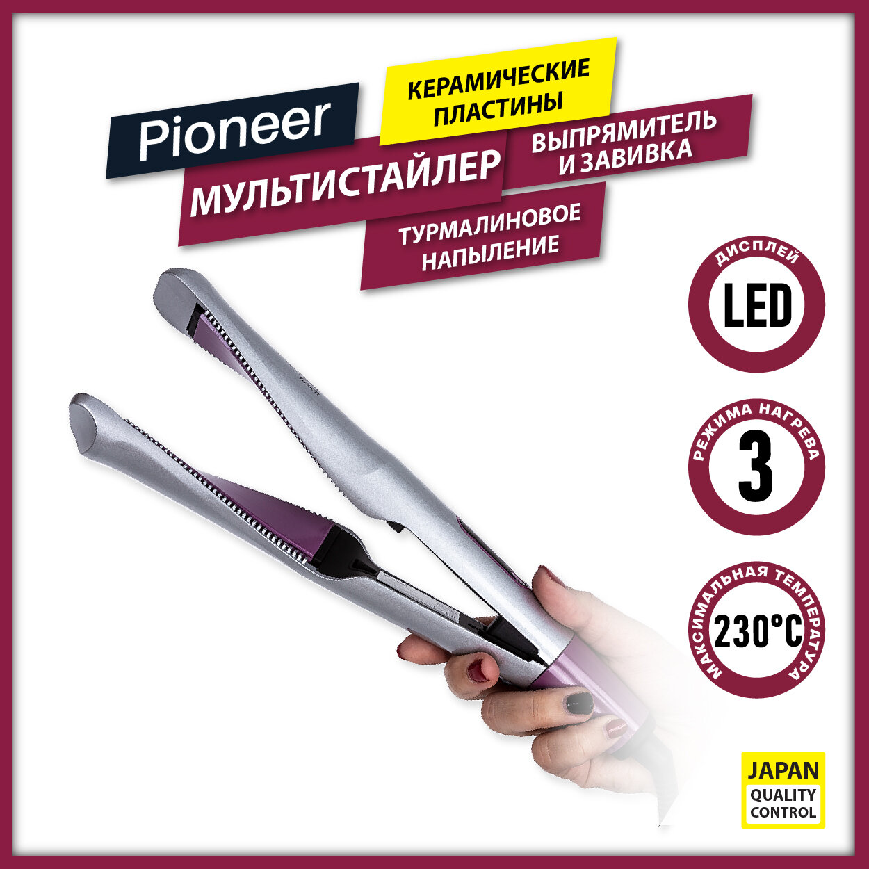 Мультистайлер для выпрямления и завивки волос HS-10115 Pioneer с LED-дисплеем, регулятором температуры и керамическими пластинами с турмалиновым напылением