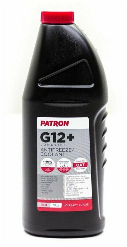 Антифриз 1Кг (0.87Л) - Красный Готовый, Patron Red G12+, Tl 774-D/F, G012a8da1, G012a8fa1, Wss-M97b44-D, 6277M, Man 324 Snf, ...