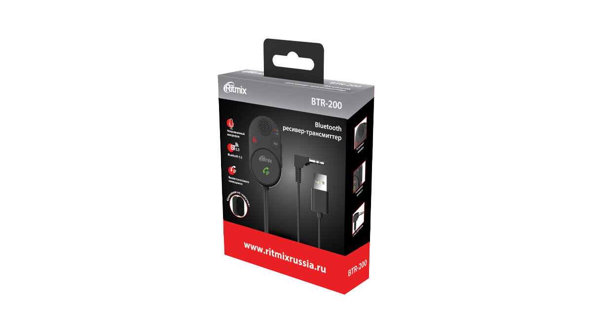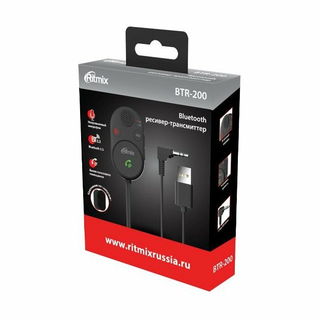 Купить Автомобильный Bluetooth ресивер Ritmix BTR-200, порт питания- USB-A, подключение AUX (3.5мм), Bluetooth 5.3