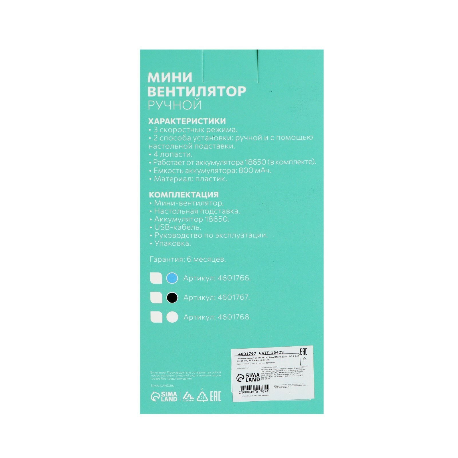 Купить Мини вентилятор ручной настольный портативный LuazON LOF-02, 3 скорости, 800 мАч, черный