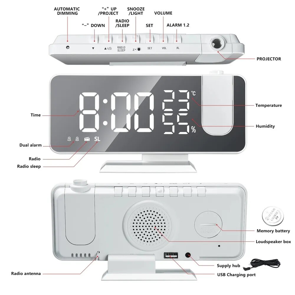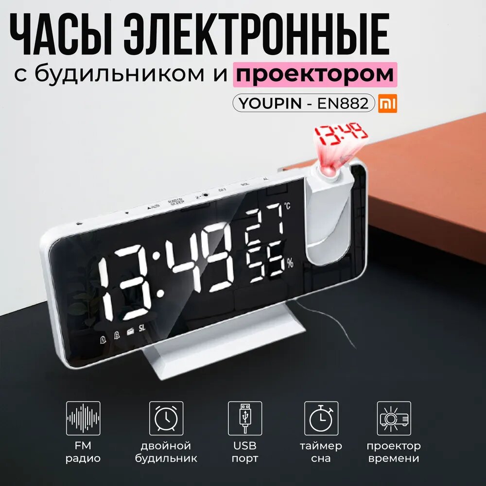 Часы будильник настольный электронный с проектором Youpin - EN8827 White интересное: