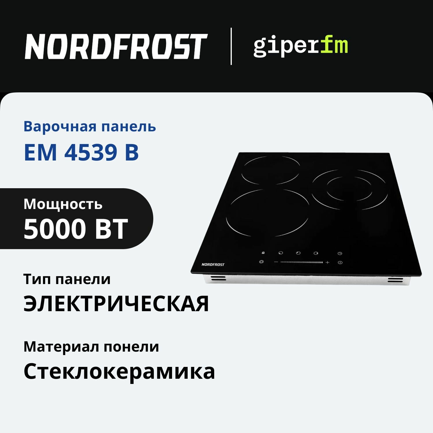 Электрическая варочная поверхность NORDFROST EM 4539 B, стеклокерамика, черный