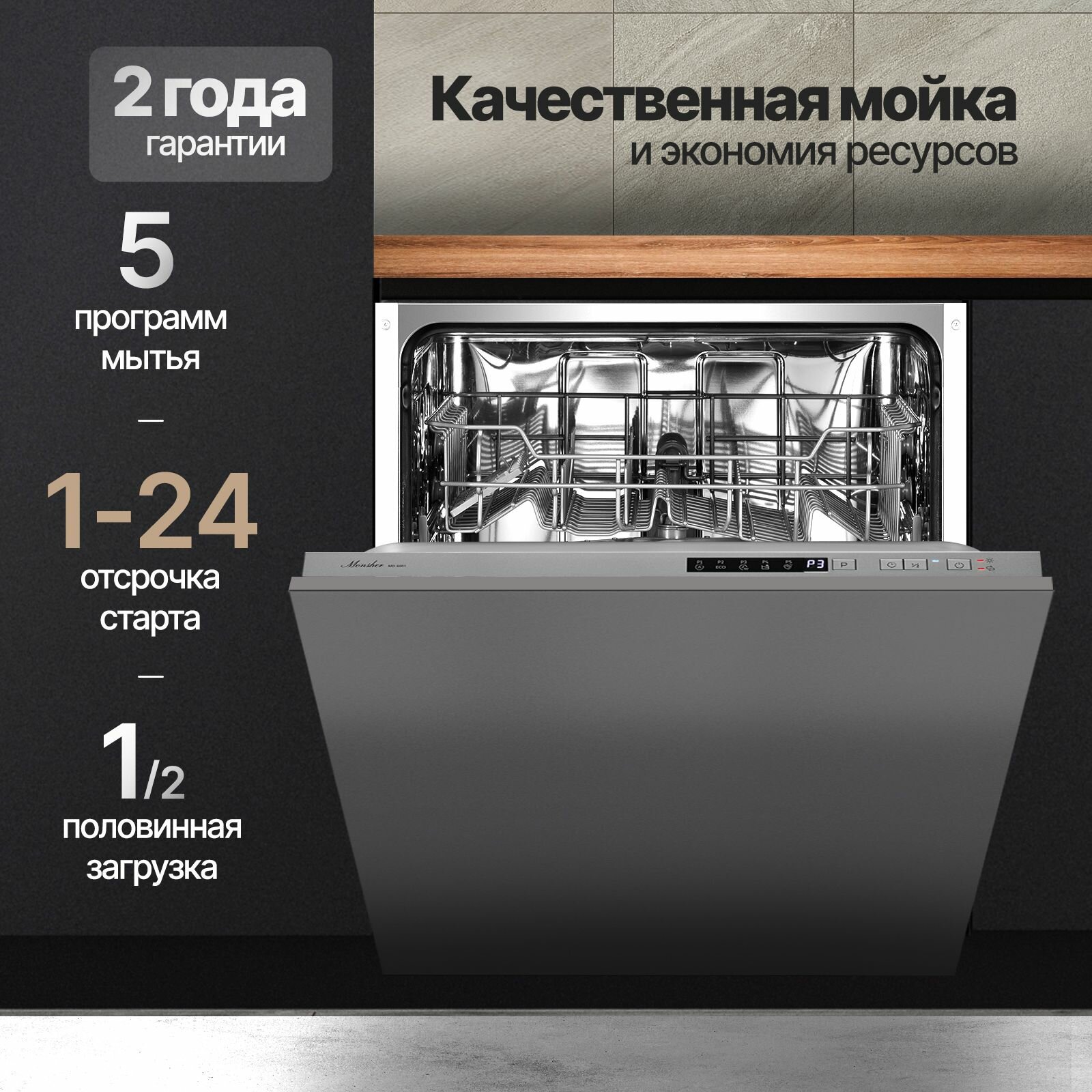 Посудомоечная машина встраиваемая Monsher MD 6001 (модификация 2023 года)