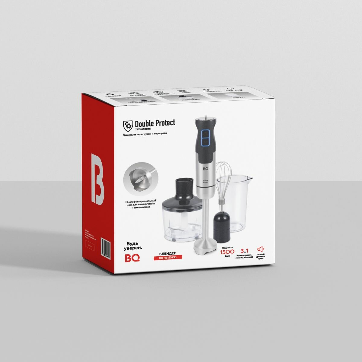 Купить Блендер погружной BQ HB1234SS Black-Steel / блендер для смузи / блендер для коктейлей