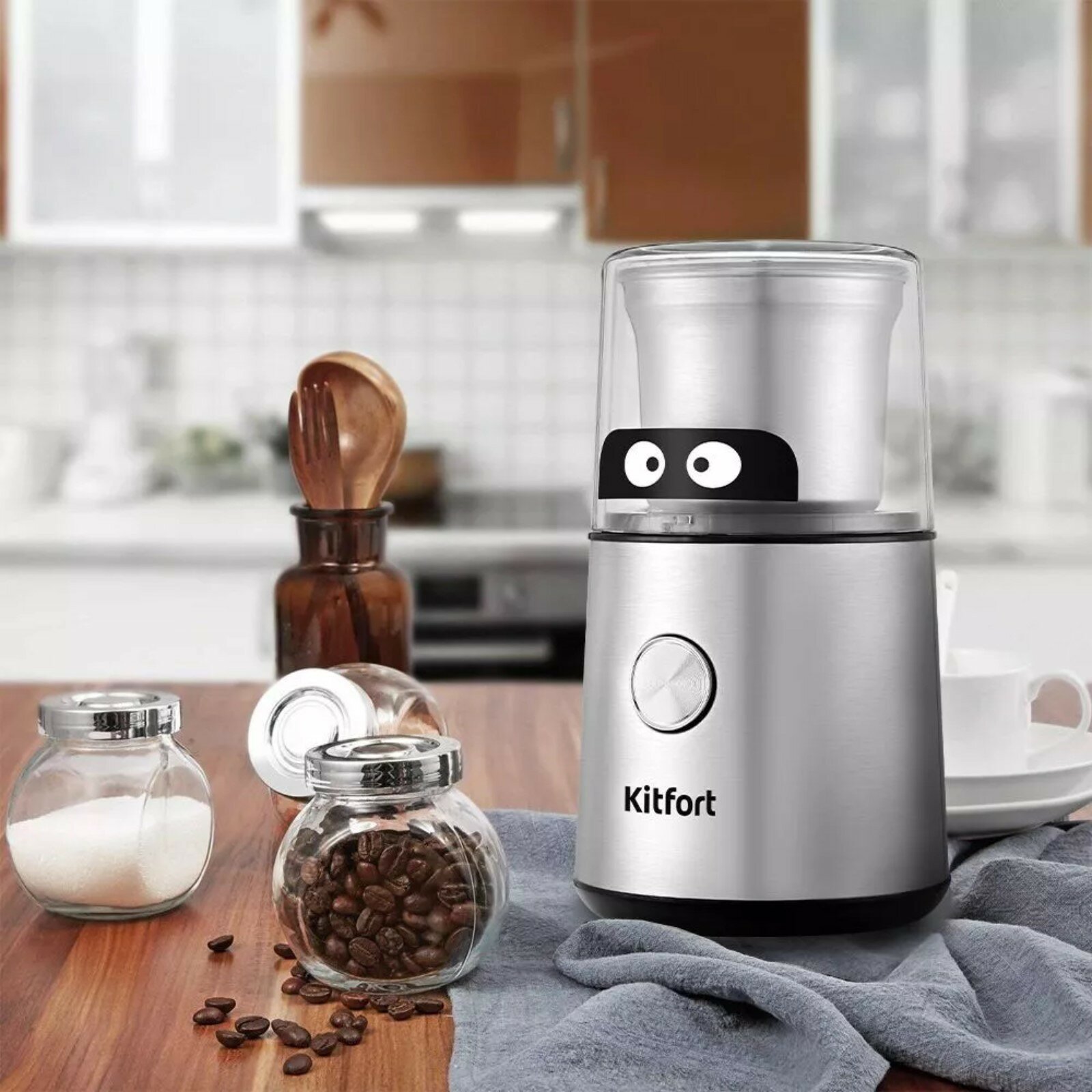 Купить Кофемолка Kitfort КТ-7123, ножевая, 200 Вт, 85 г, серебристая