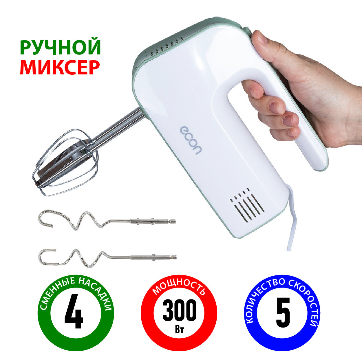 Купить Миксер ручной ECON 5 скоростей, 4 насадки, 300 Вт