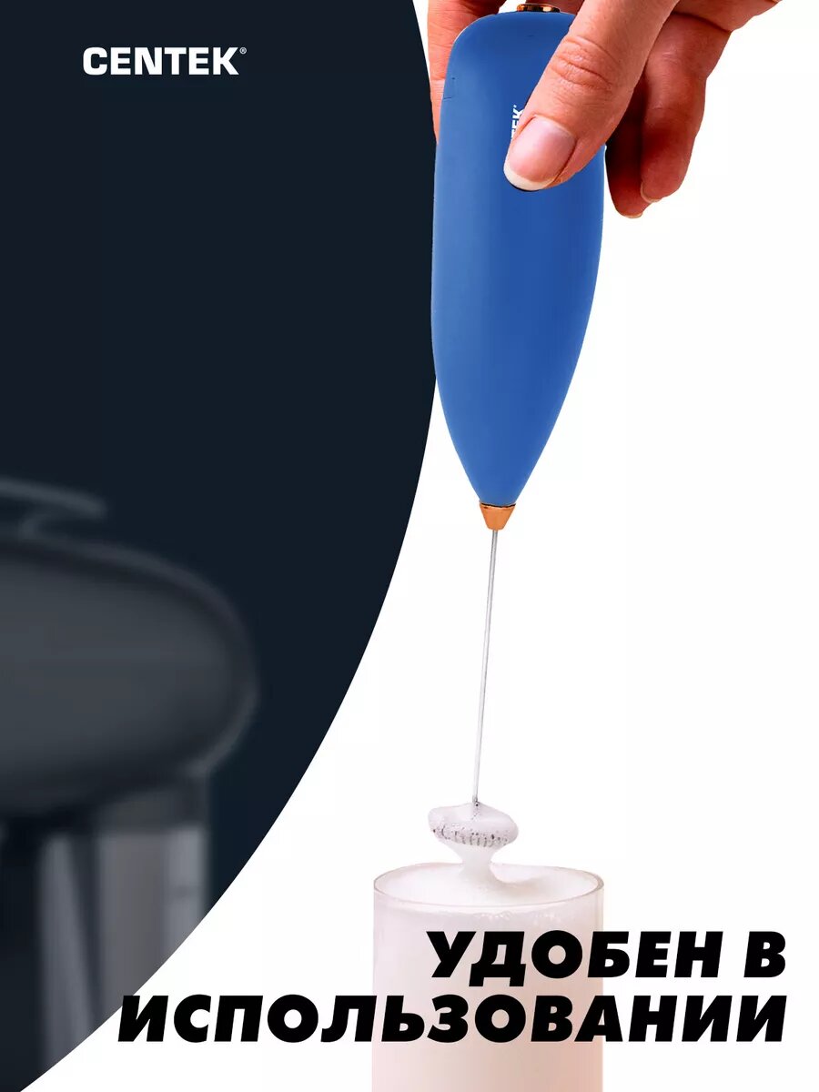 Вспениватель молока / Капучинатор / CENTEK CT-1132 Blue / Мини-миксер для Латте, Матча, Соусов, Коктейлей / Насадка из Нержавеющей стали / Покрытие корпуса "Soft-Touch