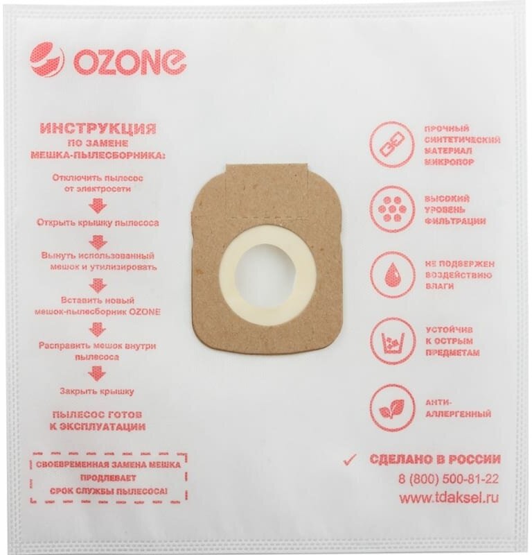 Мешок-пылесборник XXL-61 Ozone синтетические для пылесоса, 12 шт + 2 микрофильтра 10495823 интересное: