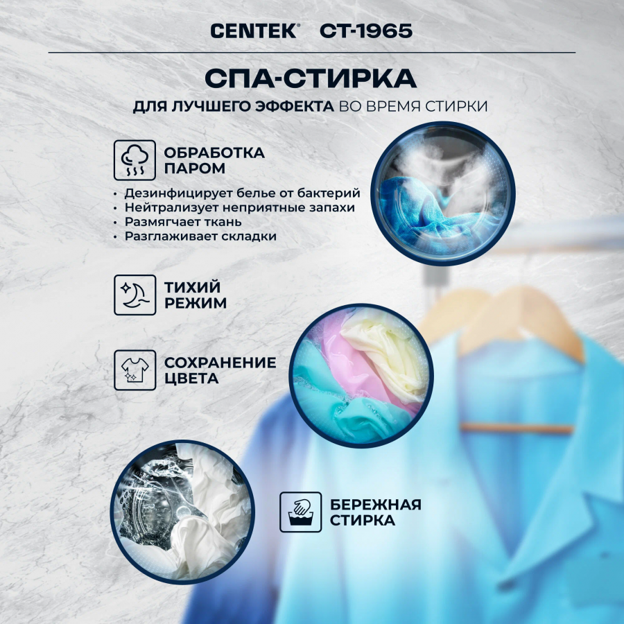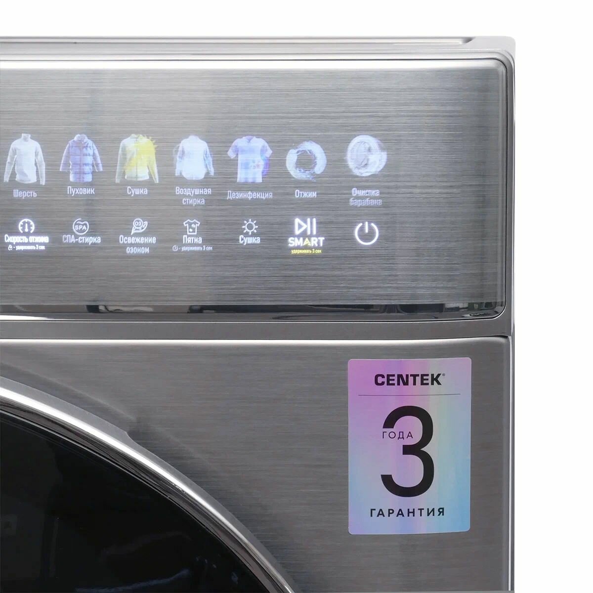 Стиральная машина Centek CT-1975 (с сушкой) прямой привод, сенсорное управление, инверторный двигатель, подсветка барабана, обработка озоном, загрузка 10 кг