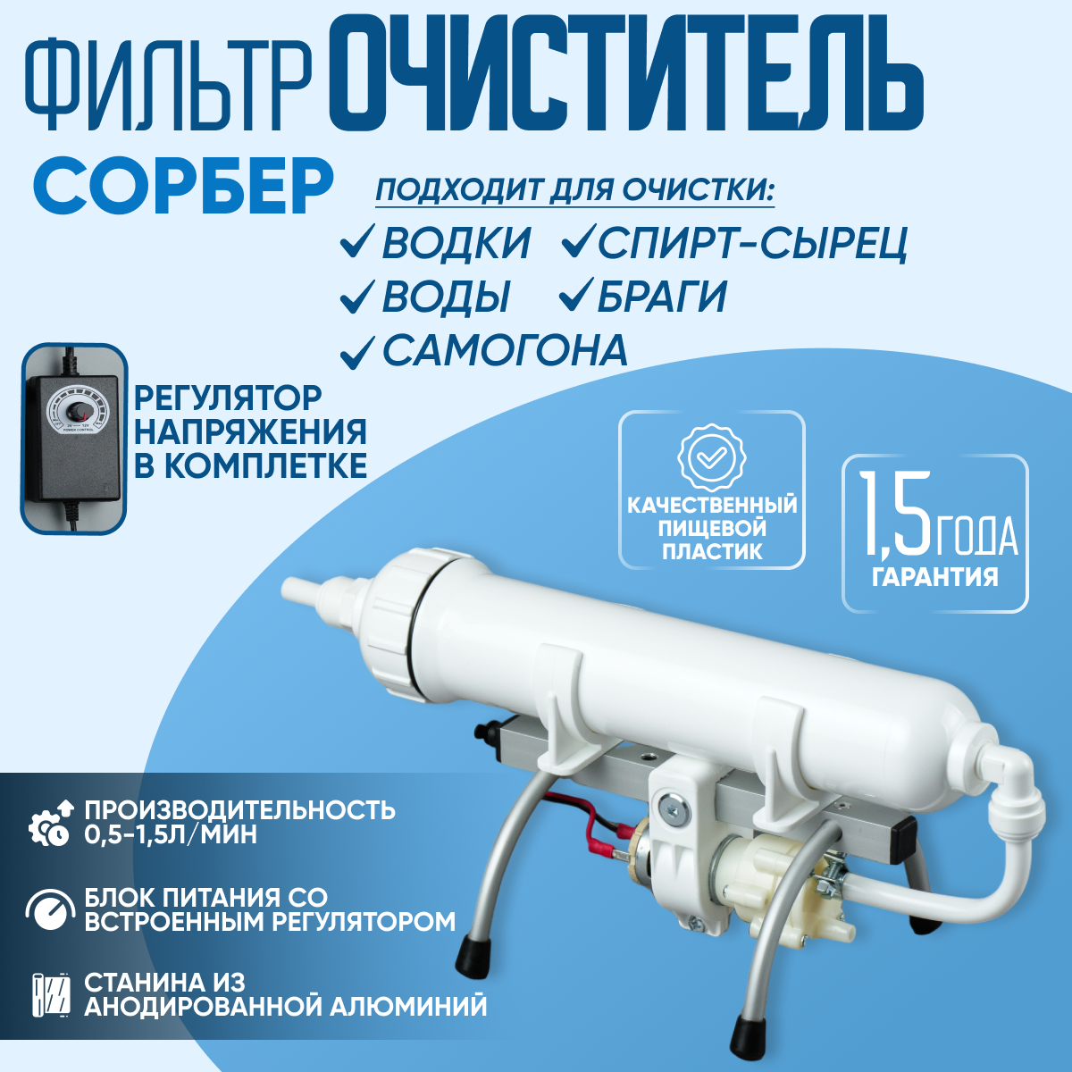 Установка для очистки спиртосодержащих жидкостей (горизонтальная, белая) Сорбер ОС-3 (регулятор в комплекте)