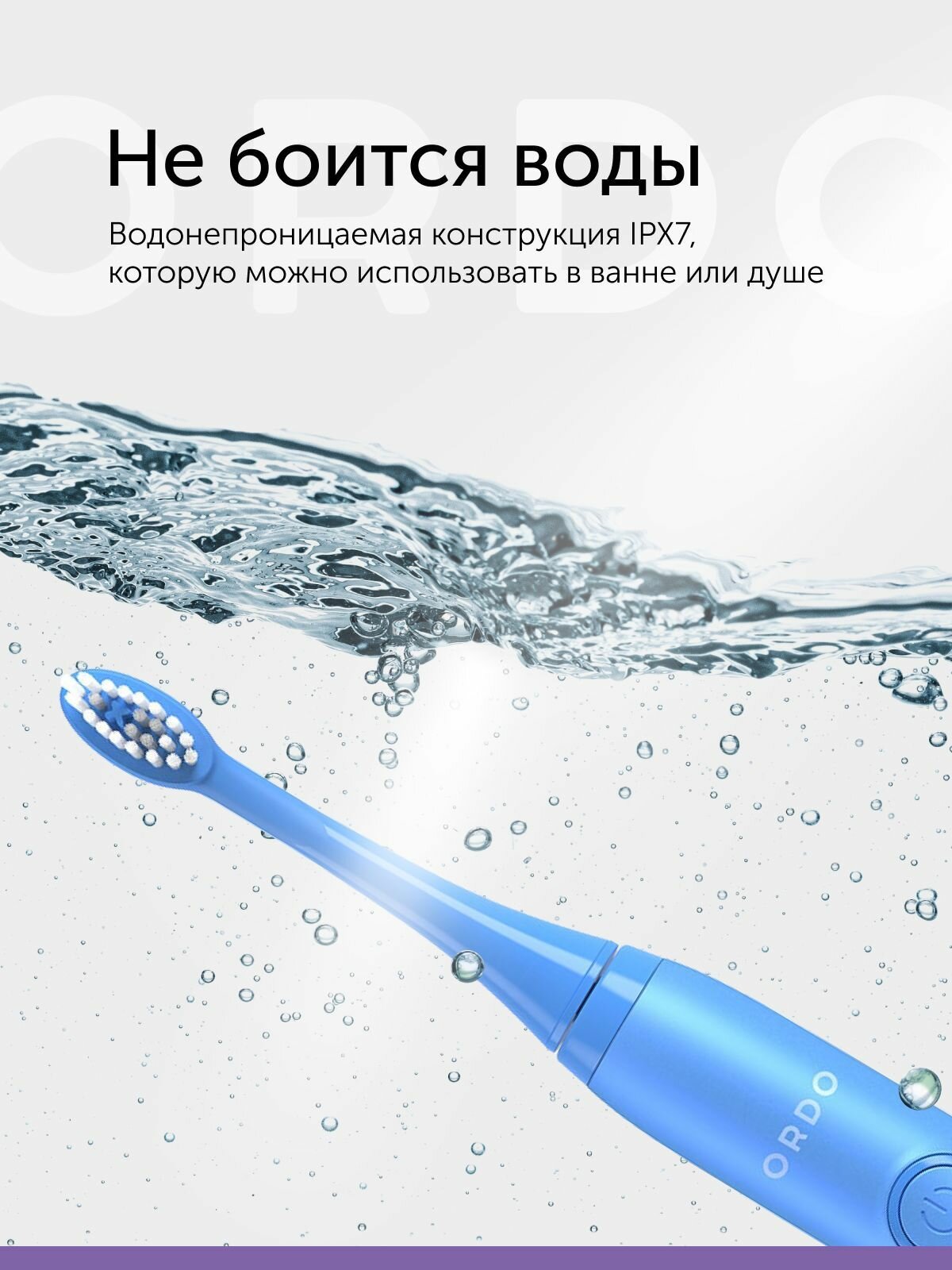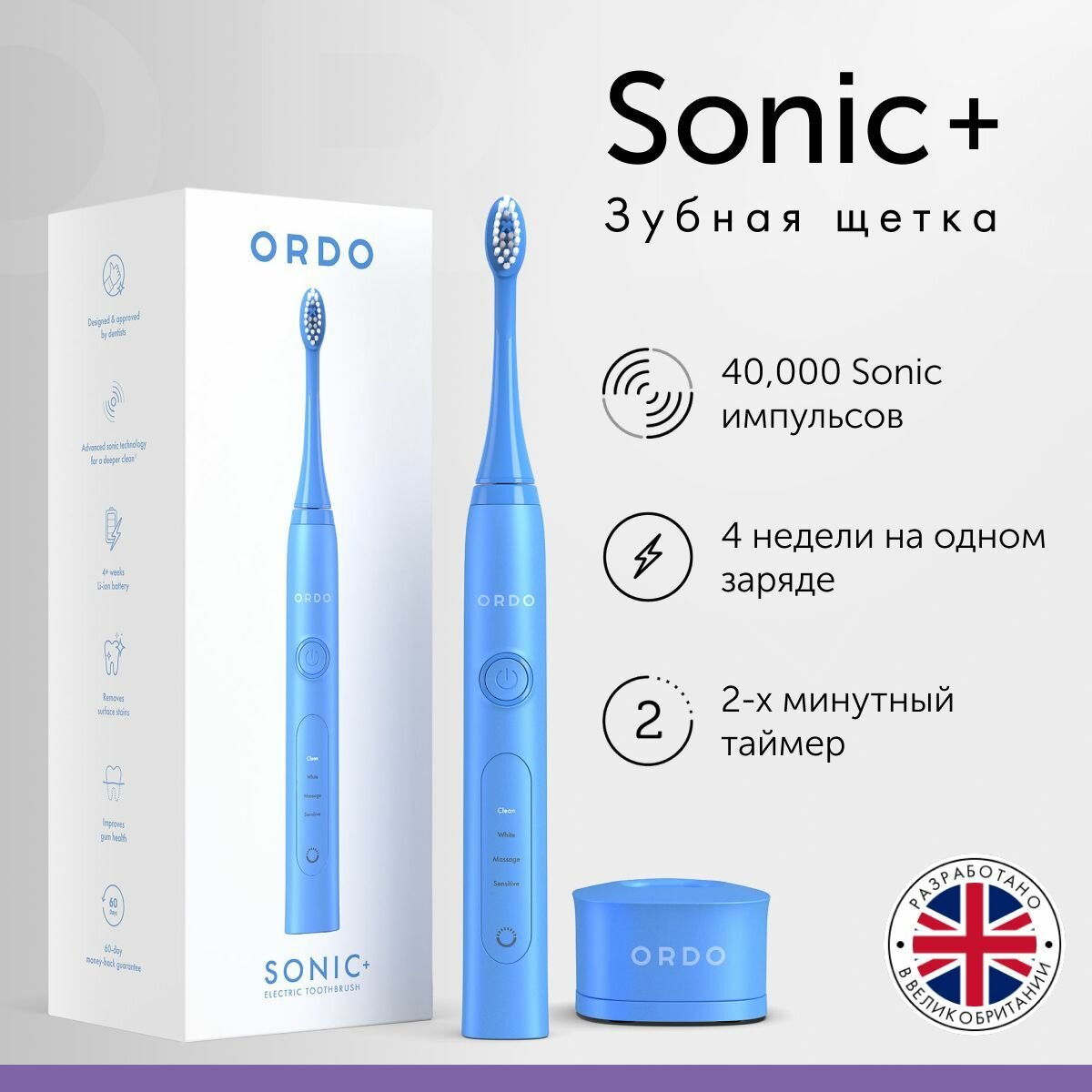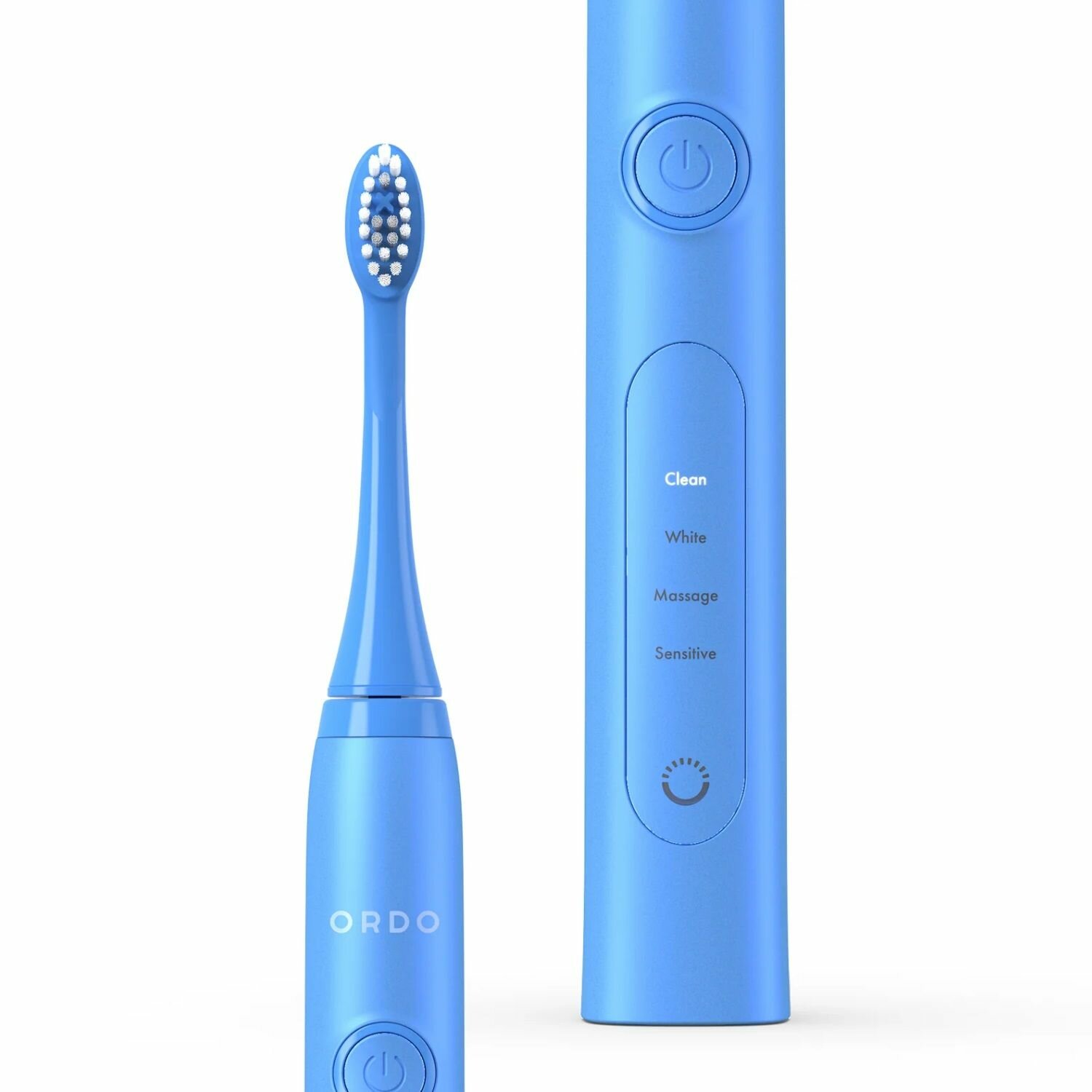Купить Электрическая зубная щетка ORDO Sonic+ с 4 режимами, таймером, защитным колпачком и зарядным устройством, голубая