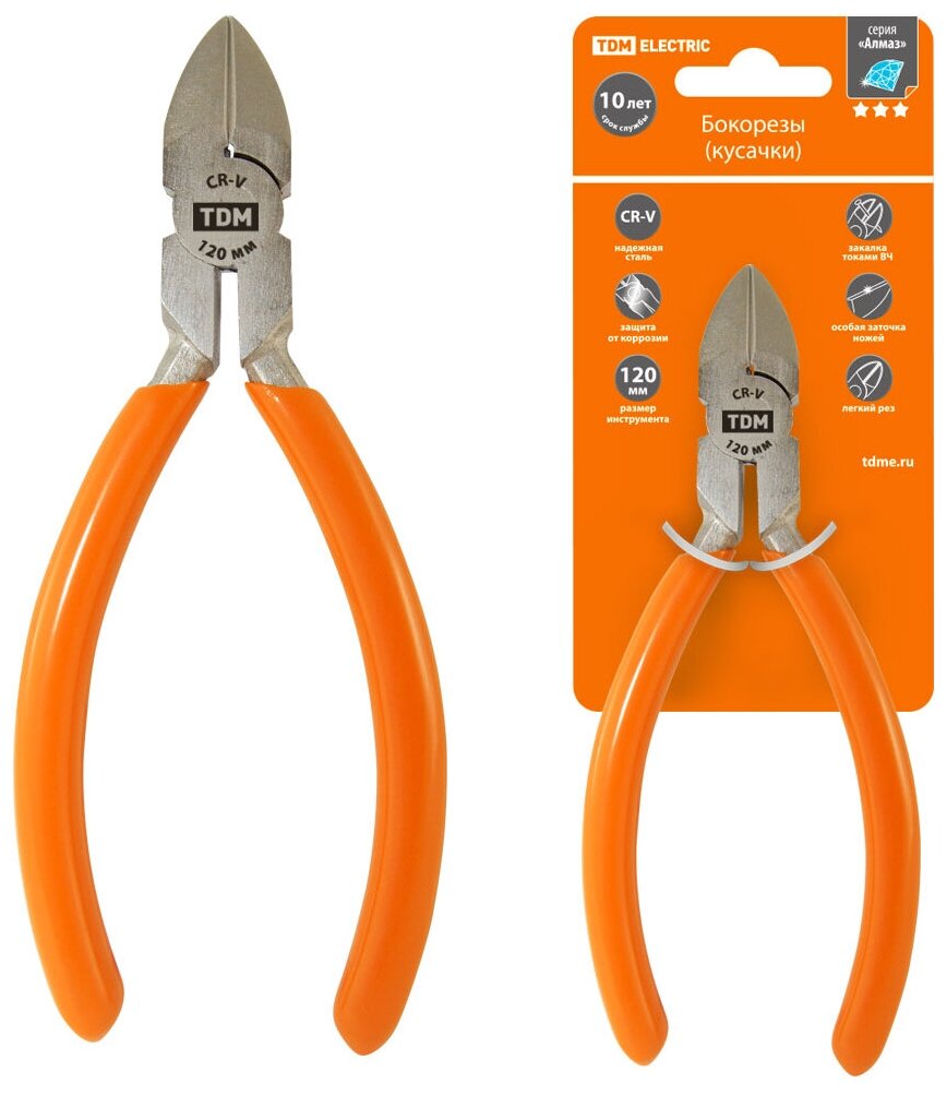 Бокорезы TDM ELECTRIC с однокомпонентными рукоятками, CR-V сталь, 120 мм, серия "Алмаз" (SQ1012-0201)