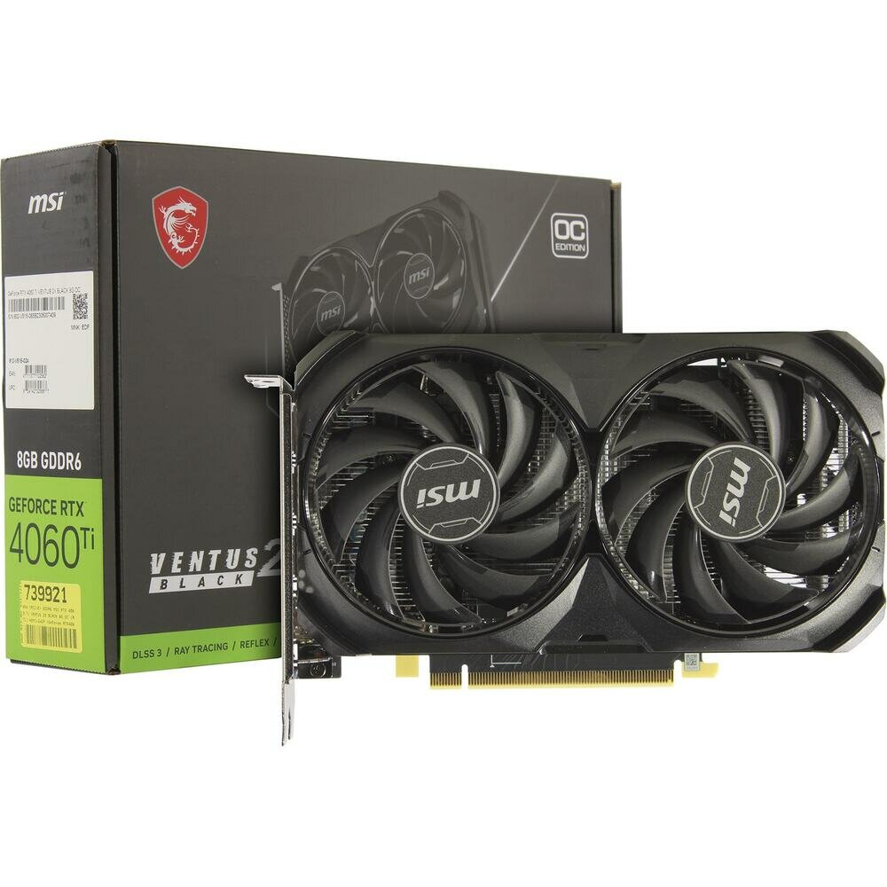 Видеокарта MSI PCI-E 4.0 RTX 4060 Ti VENTUS 2X BLACK 8G OC NVIDIA GeForce RTX 4060TI 8Gb 128bit GDDR6 2565/18000