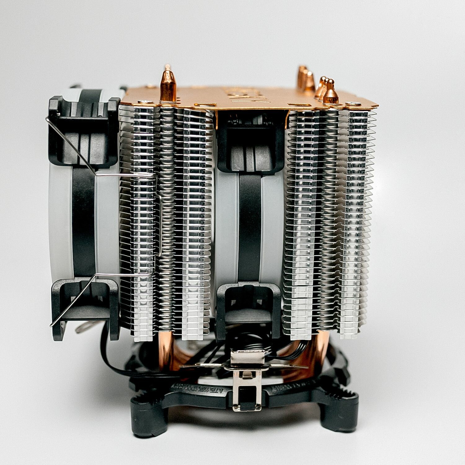 | Плюсы: | 6 медных трубок, 2 мощных вентилятора, подсветка. |