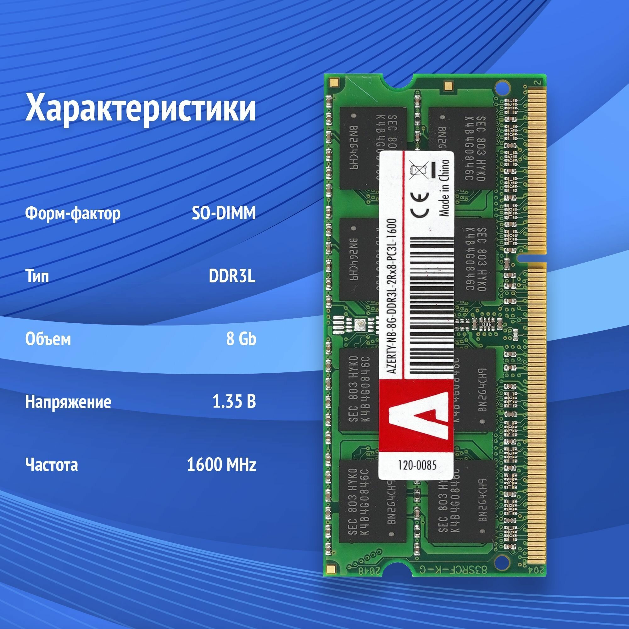 Купить Оперативная память Azerty SODIMM DDR3L 8 Гб 1600 МГц
