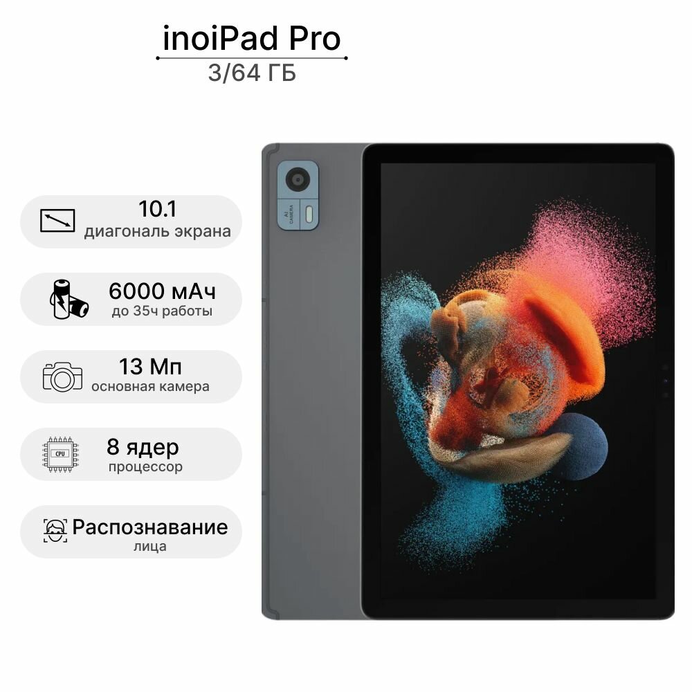 Планшет 10.1 inoi inoiPad Pro IPS 1920x1200/3Gb/64Gb/Wi-Fi+LTE/Android 13 серый [4660042758473]