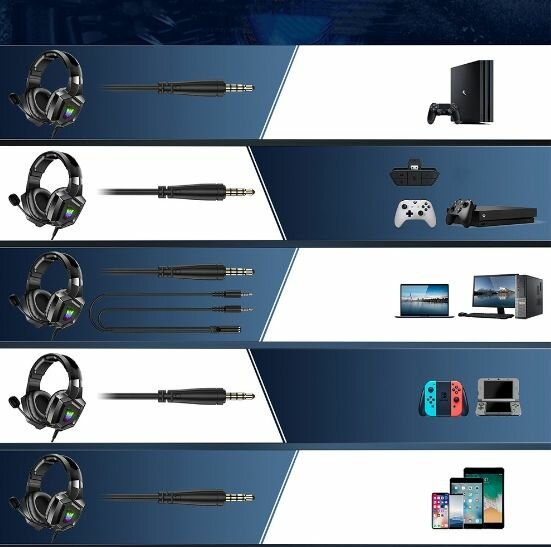 Игровые проводные наушники Onikuma K8 с RGB подсветкой, черные