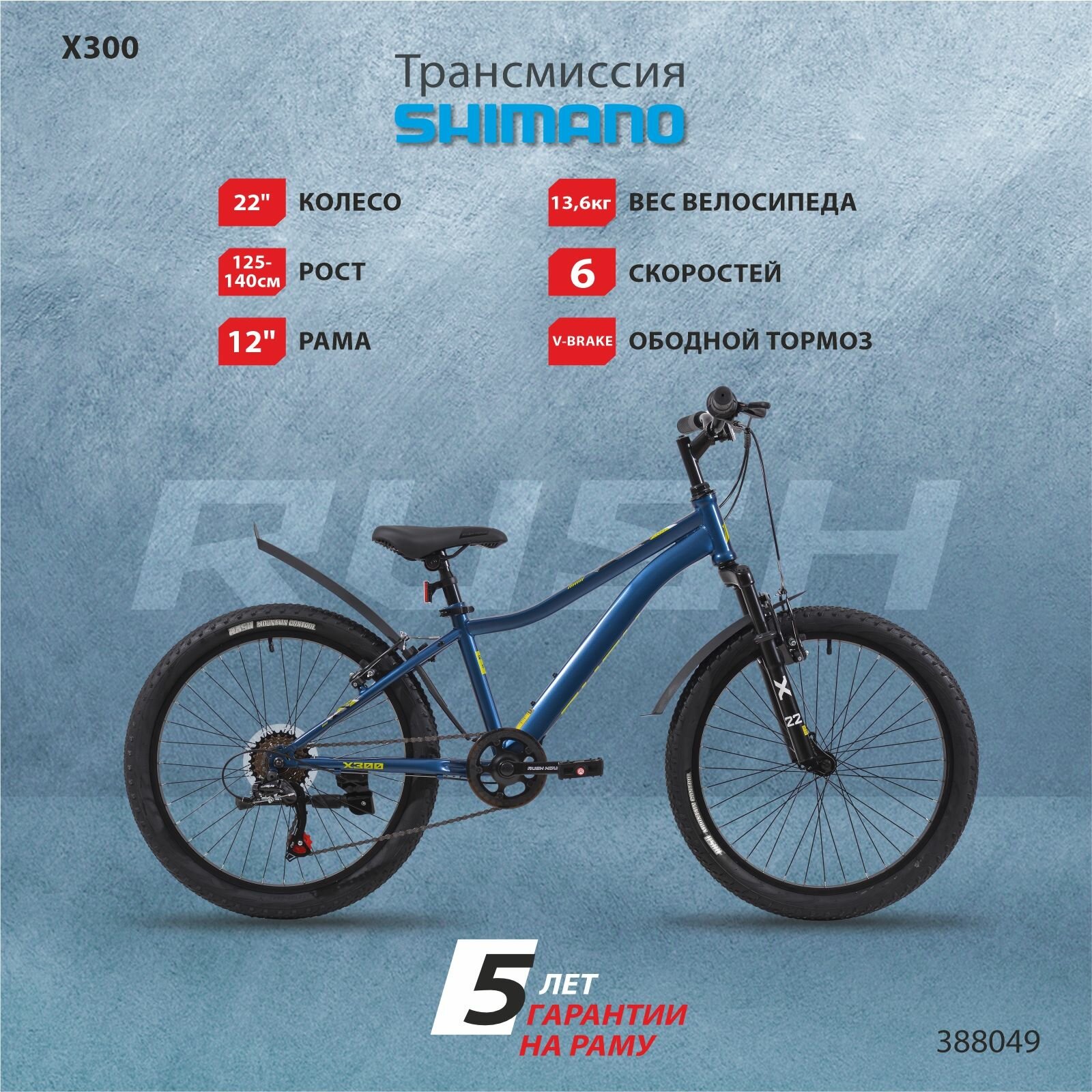 Купить Велосипед детский горный 22" рост 125-140см 6 скоростей синий рама 12" велик 6 лет 7 лет 8 лет переключатель SHIMANO скоростной RUSH HOUR X 300